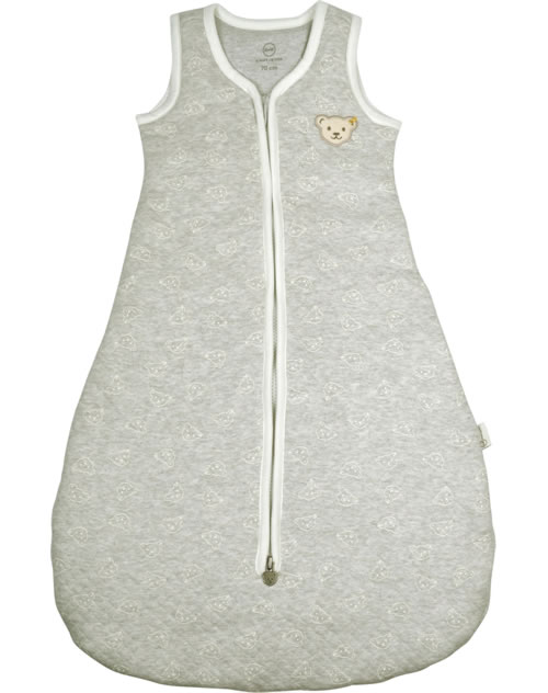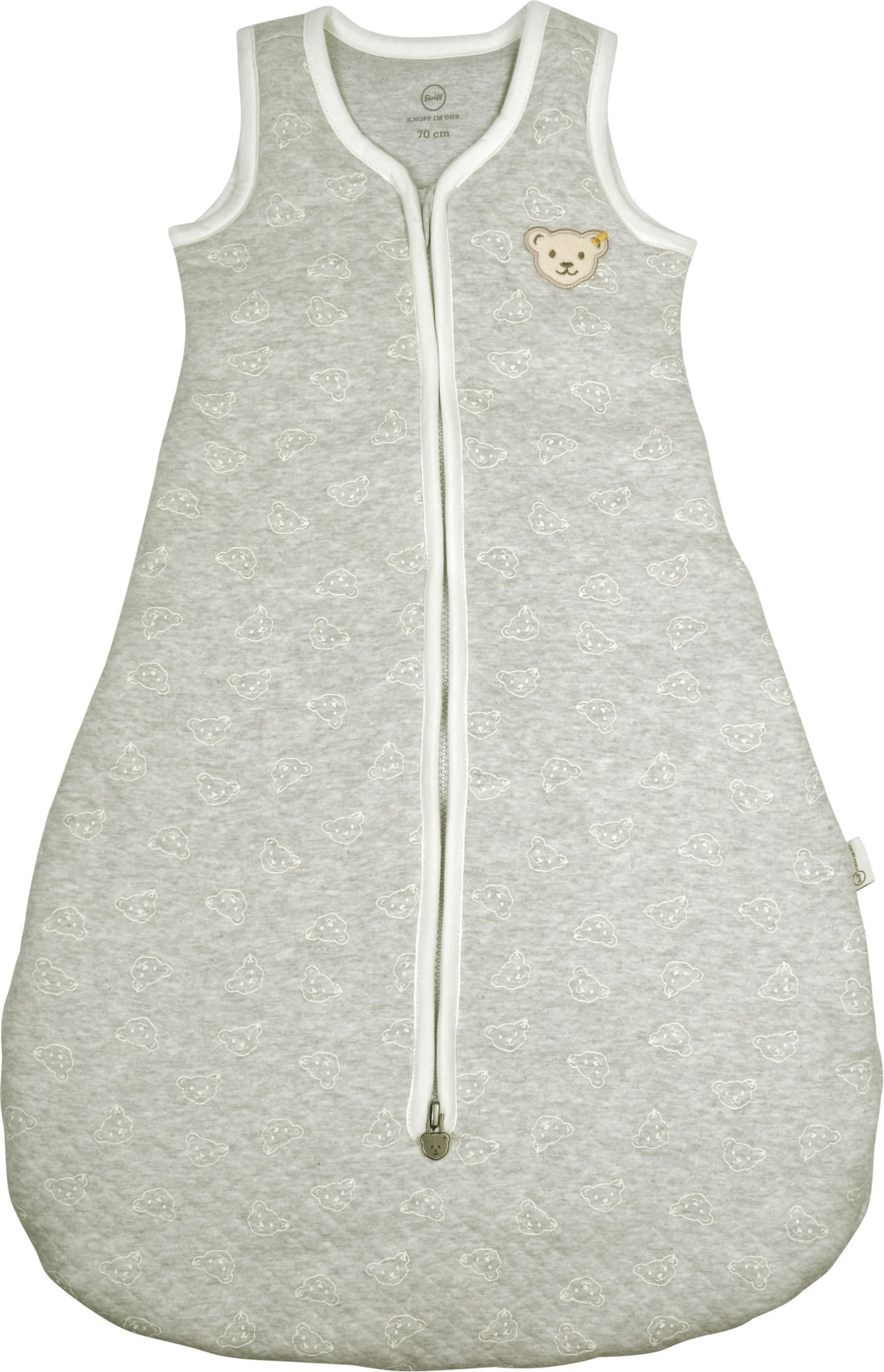 The ideal companion for the baby - cuddly, soft sleeping bag from the STEIFF wellness collection. The waffle-shaped sleeping bag will quickly become a favorite. The inside is lined in gray. The left breast is decorated with the little STEIFF bear. The zipper has a chin guard on the neck.