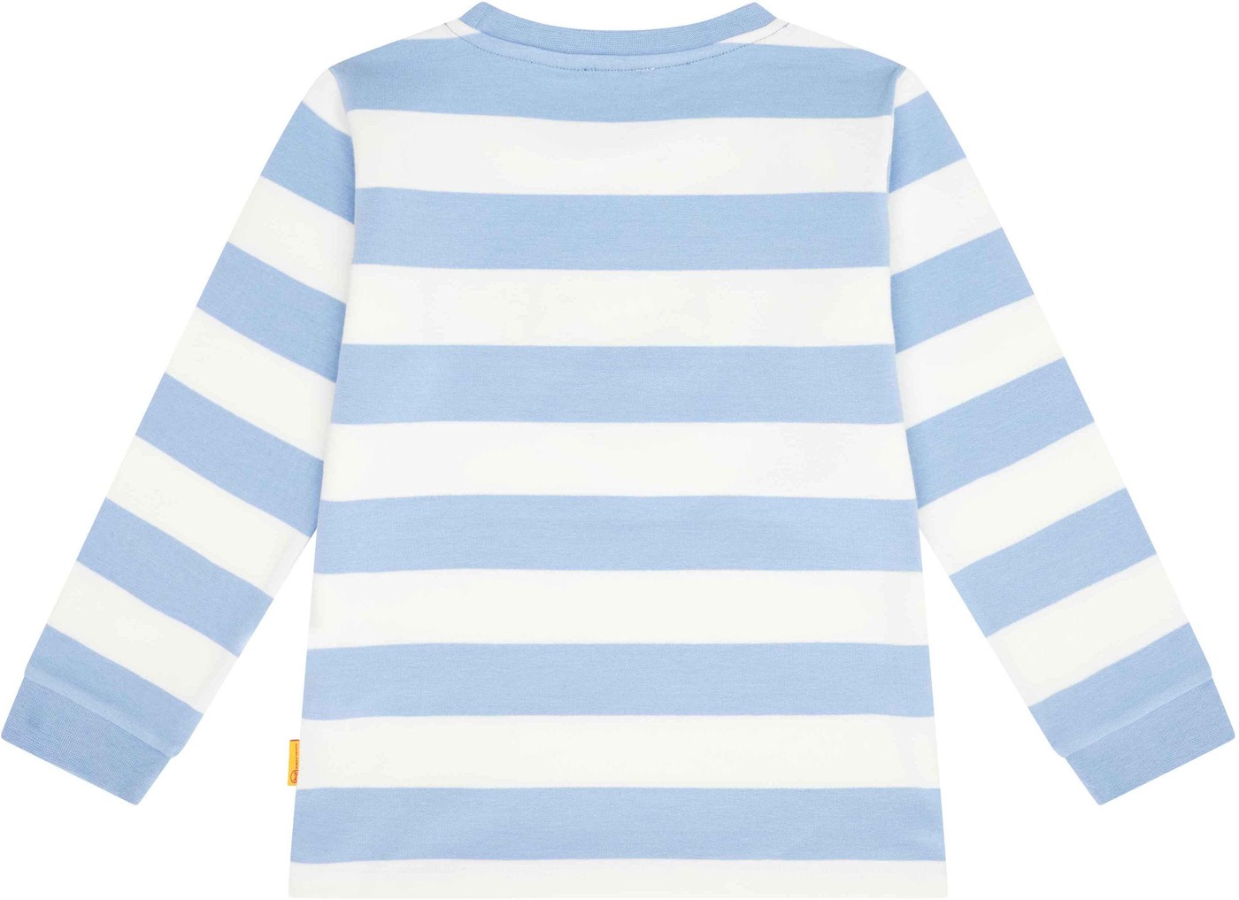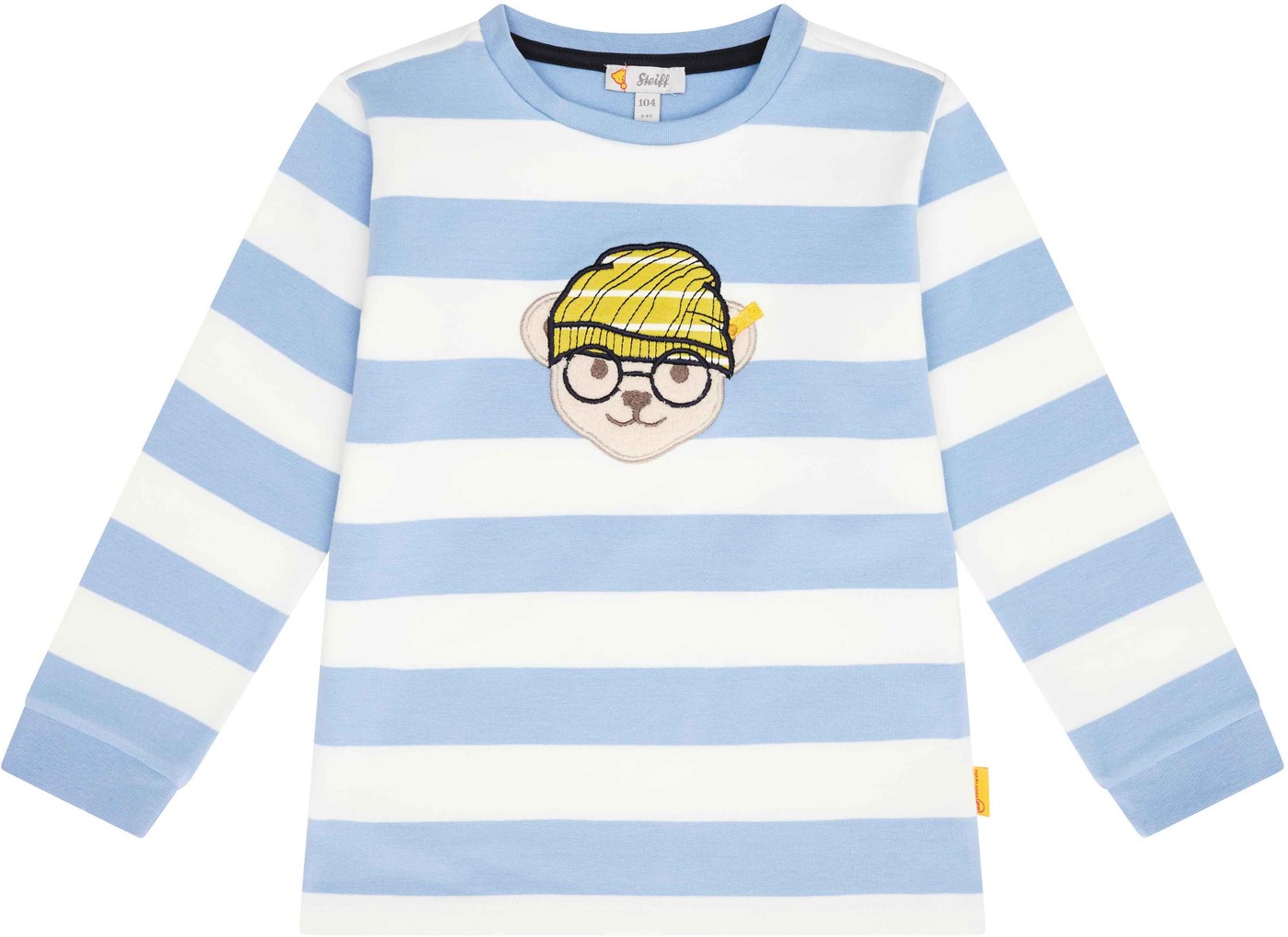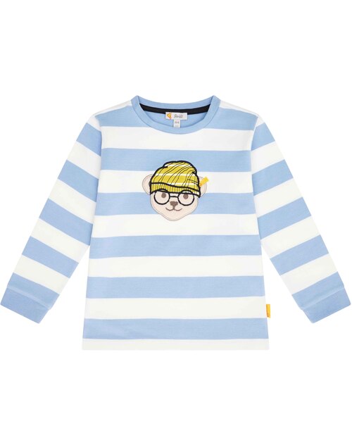 Striped sweat shirt from the Powerful collection by STEIFF for boys. The sweatshirt is softly roughened on the inside and is therefore particularly cuddly. The STEIFF bear with a hat and glasses on the front is an eye-catcher.