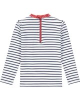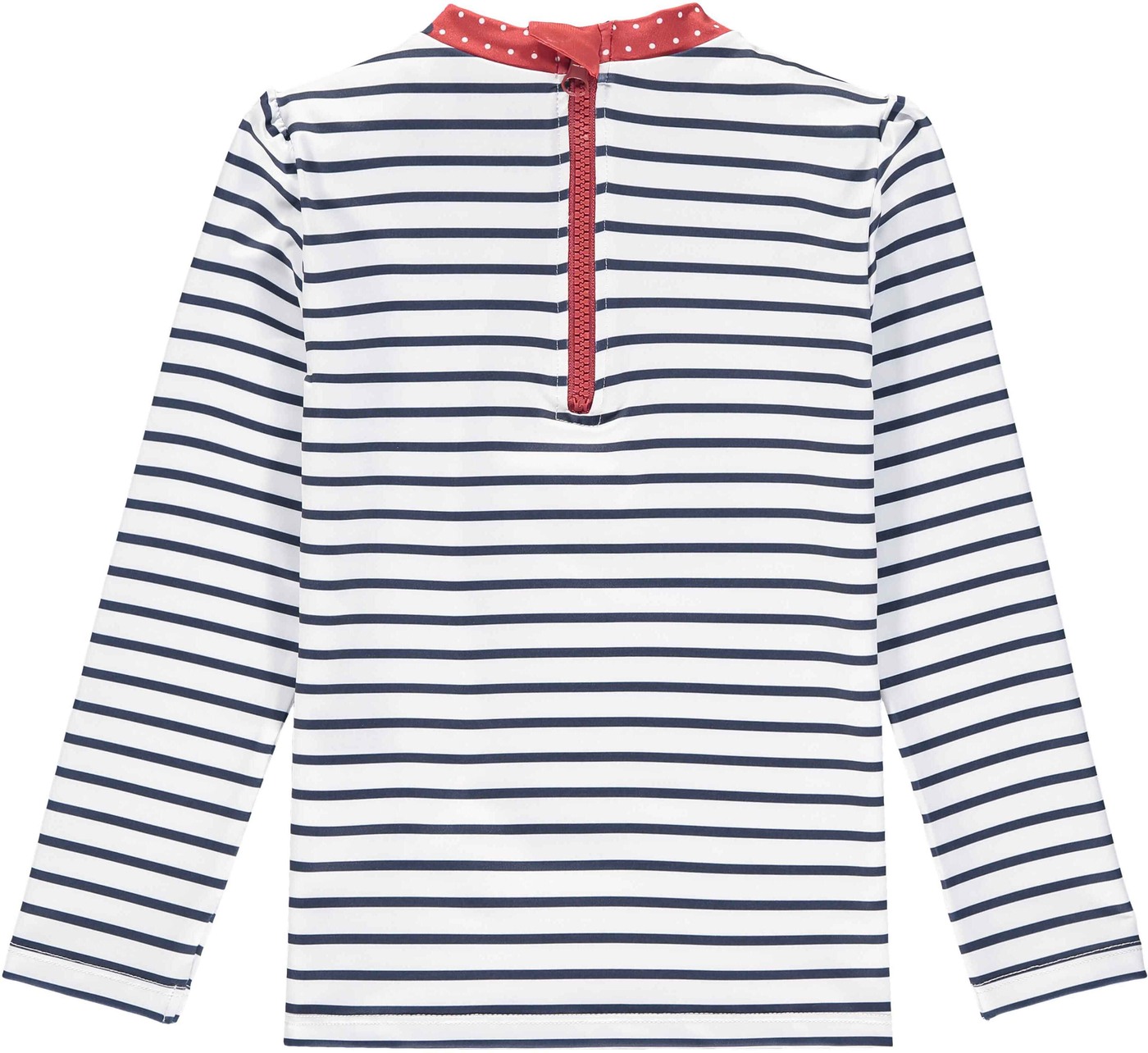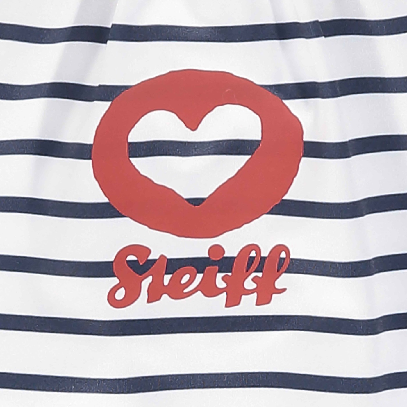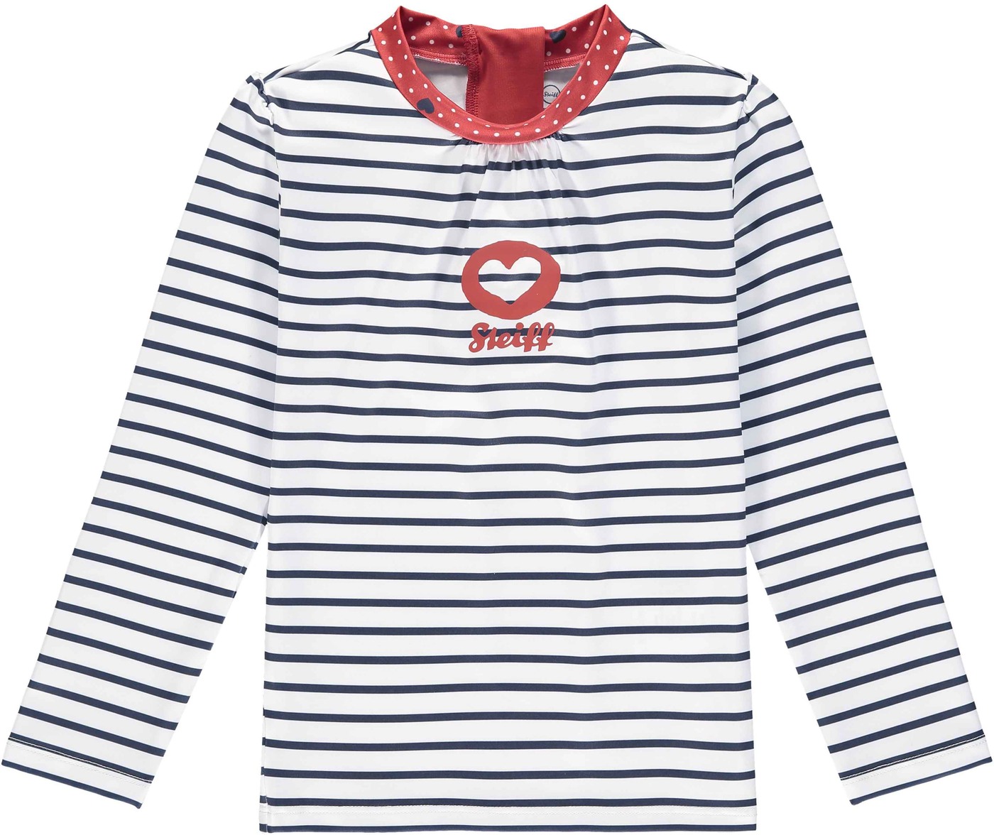 Striped swim shirt with long sleeves for girls by STEIFF. With this shirt you can enjoy the sun more carefree and after bathing it is dry again quickly. The STEIFF logo with a heart adorns the chest. The zipper is on the back.