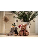 The 30 cm tall Jimmy Christmas teddy bear is the perfect Christmas present. He looks curiously out of his black eyes, his firm sniffing nose and his cute ears with stainless steel "button in ear" match perfectly. Jimmy is made of wonderfully wild cuddly plush and has granulate bags in his bottom and paws, which not only gives him stability when sitting, but is also a fascinating tactile experience for small and large hands! The cuddliest Christmas present for anyone you have taken close to your heart!