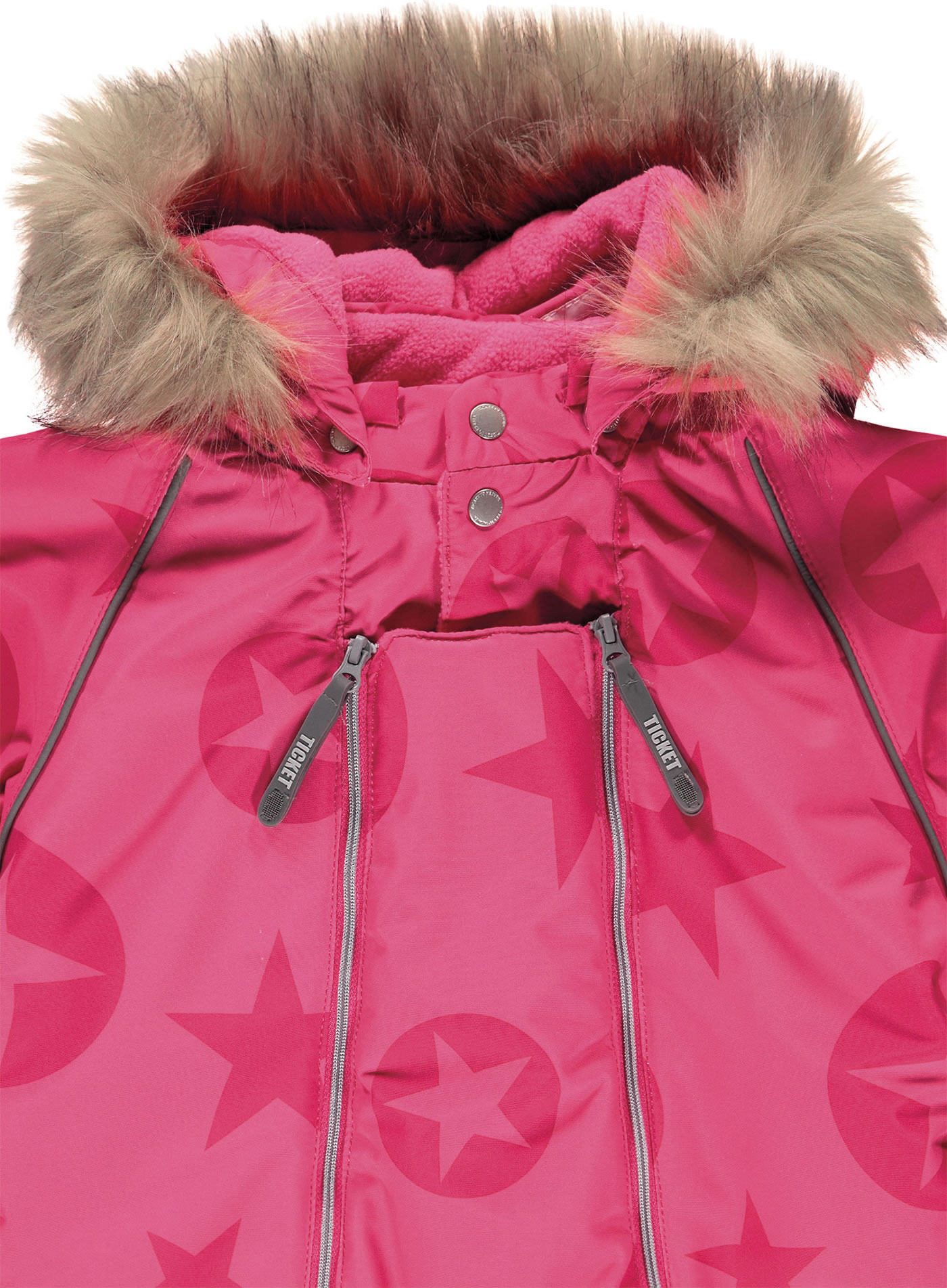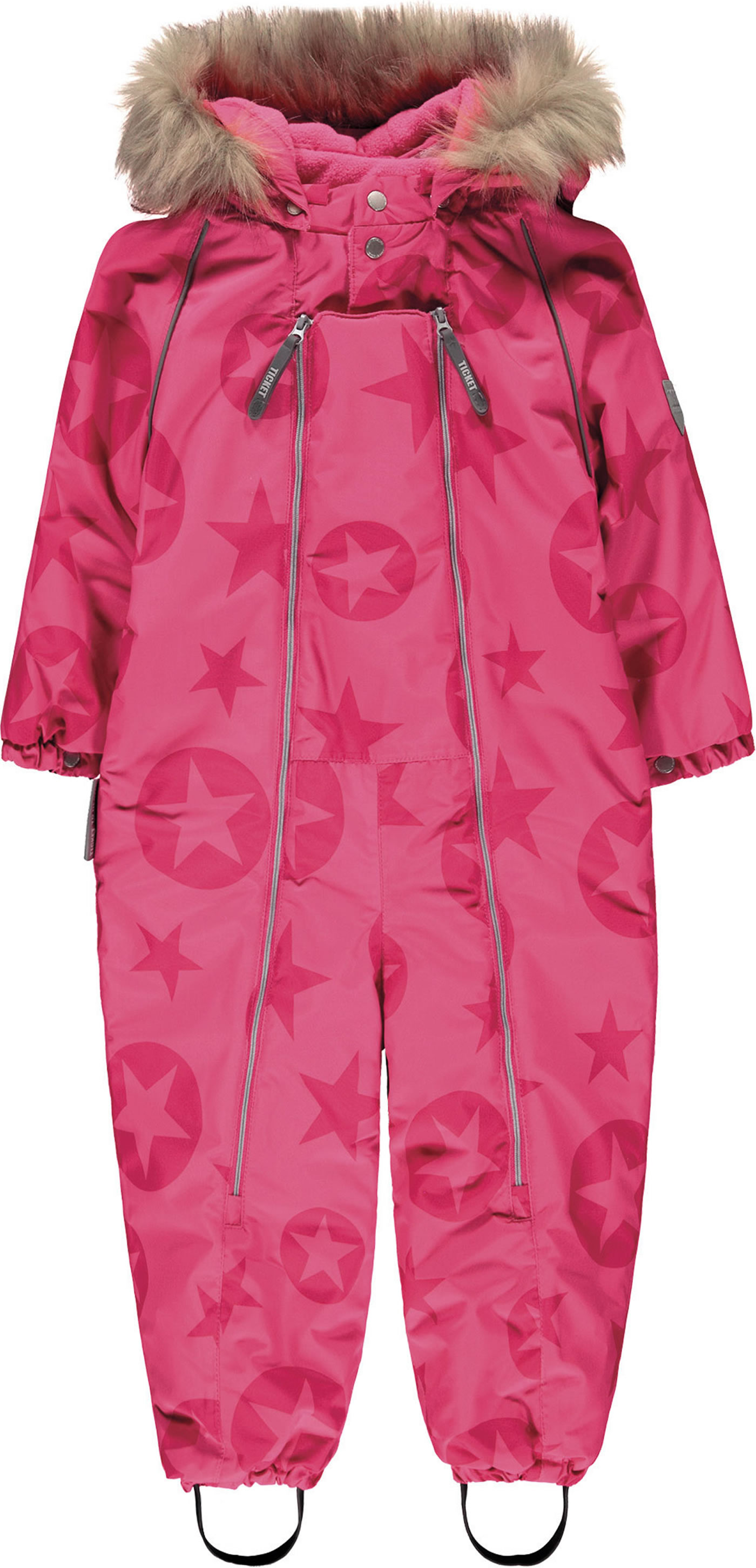 Warm, breathable snowsuit in pink from TICKET TO HEAVEN for girls. The overall is wind and waterproof and has adjustable cuffs in the width. The hood with fur trim can be unbuttoned. The inside is warm lined and the legs have buttoned footbridges, so everything stays where it belongs. The long zippers allow easy on and off. Reflective details provide the necessary visibility on dull days. Skiing, sledging ... or simply long gameplay in the snow - this snowsuit is suitable for demanding activities. So nothing is in the way of extensive winter fun!