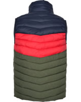 Quilted waistcoat with a stand-up collar for boys by TOM JOULE. On the front there are two pockets with zippers. The zip has a chin guard and a lined wind guard. The material is water-repellent and the padding keeps the vest nice and warm on cooler days. And when the vest is not needed, it can be stowed away in a small pocket to save space.
