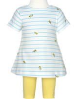 Nice set consisting of a dress and leggings by TOM JOULE. The striped short-sleeved dress has buttons on the shoulder that make it easier to put on and take off. The pattern with blue stripes and small bees is particularly beautiful. The yellow leggings, which have a comfortable elastic waistband, match the color.
