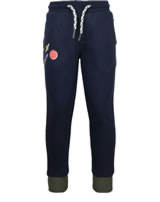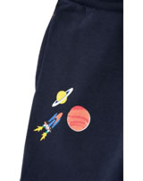 High-quality jogging pants for boys by TOM JOULE. The comfortable pants made of sweat fabric in dark blue are equipped with an elastic waistband and a drawstring. Inside the trousers are softly roughened. Two side pockets offer space for small items. The print with space pattern on the front and the little astronaut on the back pocket are great eye-catchers.