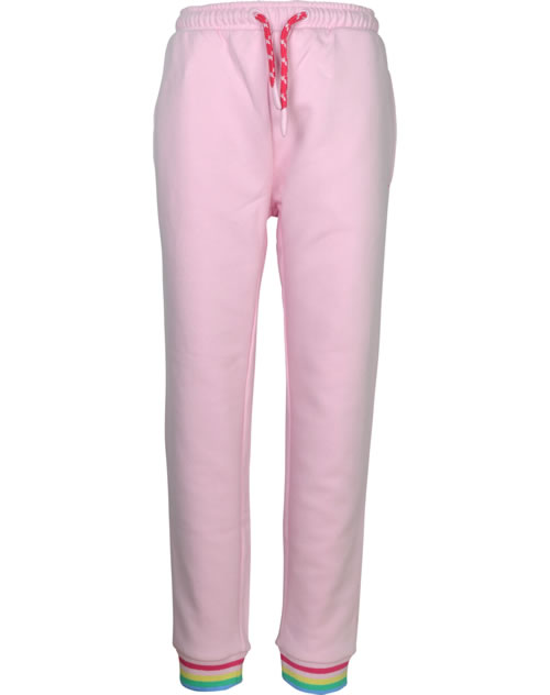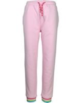 High-quality jogging pants for girls by TOM JOULE. The comfortable pants made of sweat fabric in pink are equipped with an elastic waistband and a drawstring. Inside the trousers are softly roughened. Two side pockets offer space for small items and the small Tom Joule rabbit embroidered on the waist is a pretty detail. The cuffs in rainbow colors are a great eye-catcher.