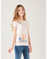 Short-sleeved shirt with a cycling fox on the front by TOM JOULE for girls. The soft material ensures a high level of comfort.