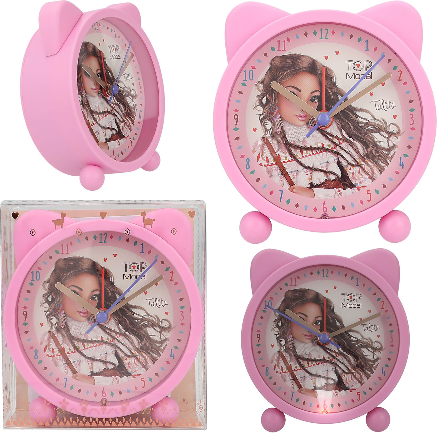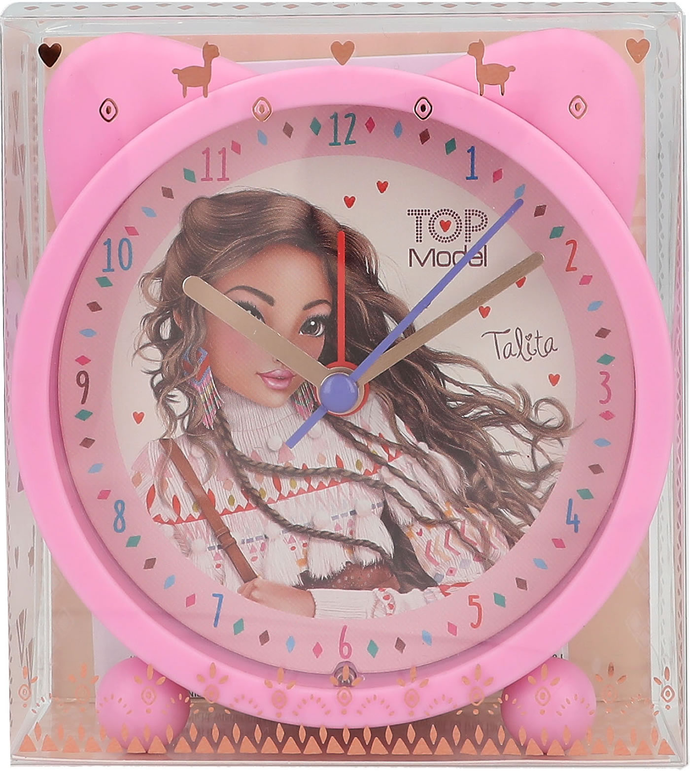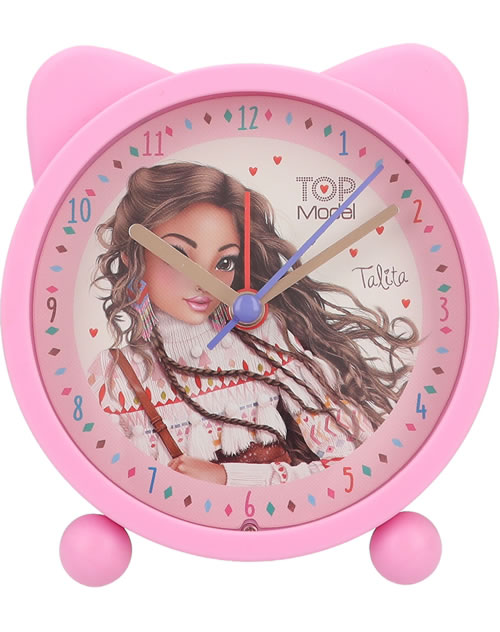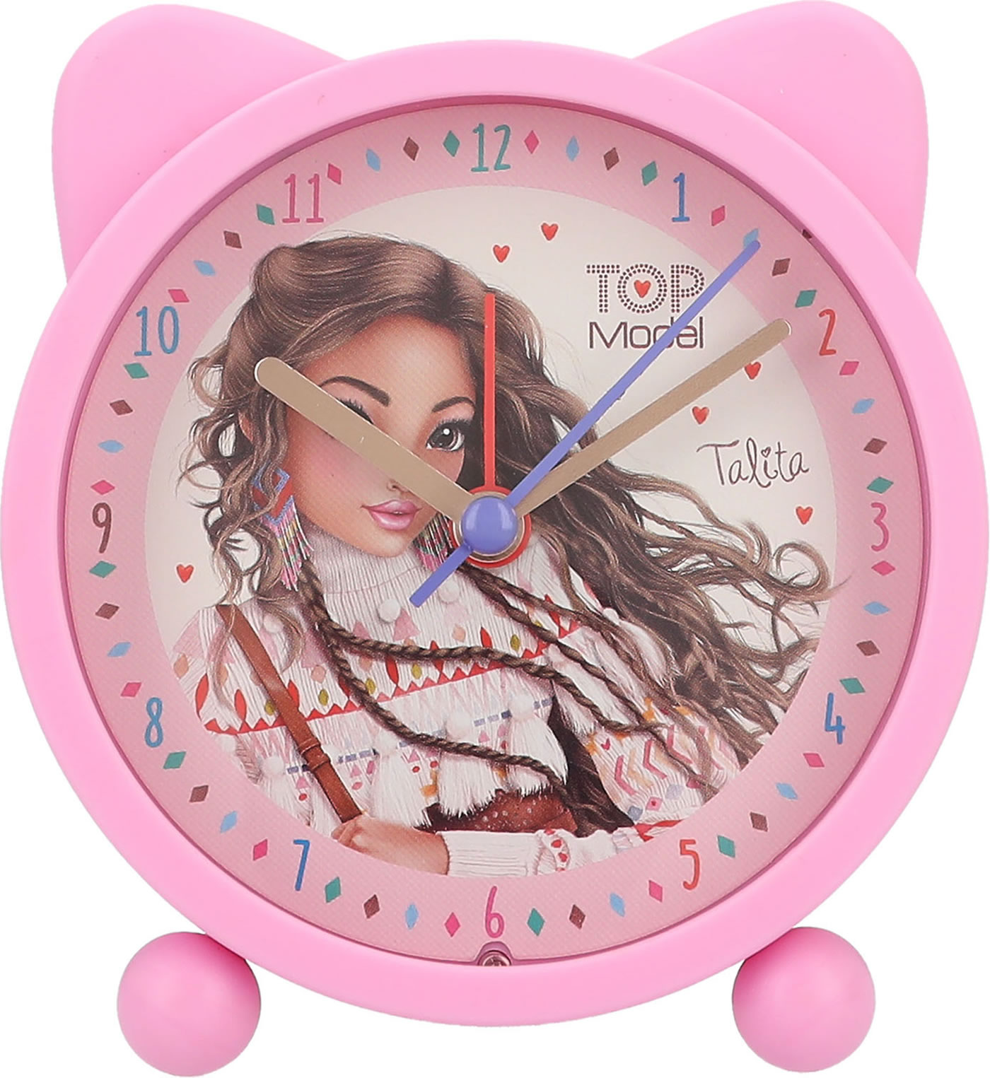It's time for a cute TOPModel alarm clock! The pink case has cute, protruding ears, a super beautiful model motif and cheerful, colorful numbers. With light function (at the push of a button) and silent hands.