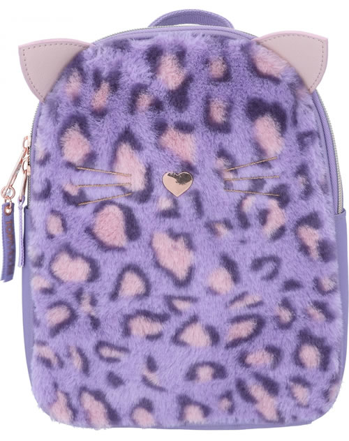 This stylish backpack offers plenty of space for accessories. The pretty design in a leopard look will quickly make it a favourite. Special details are the cat ears and embroidered nose and whiskers.