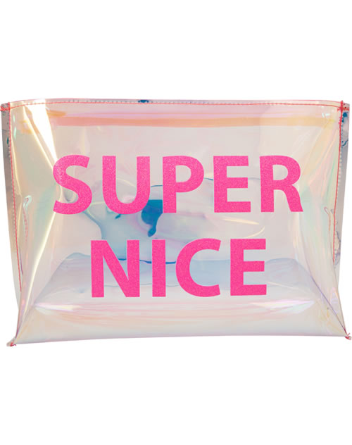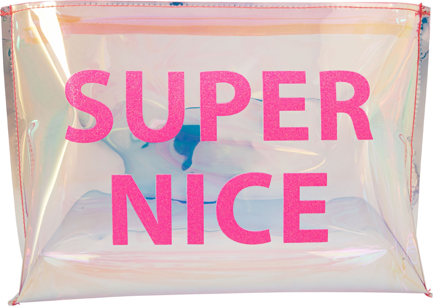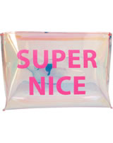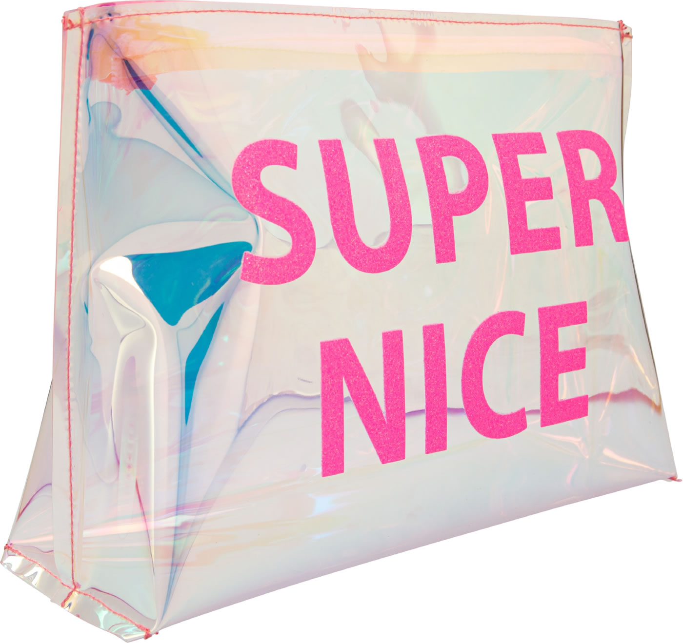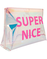 The rectangular, transparent toilet bag shimmers in the most beautiful holo tones. The color-coordinated zipper is the perfect place for make-up, hair utensils, cosmetics and everything you need when traveling.