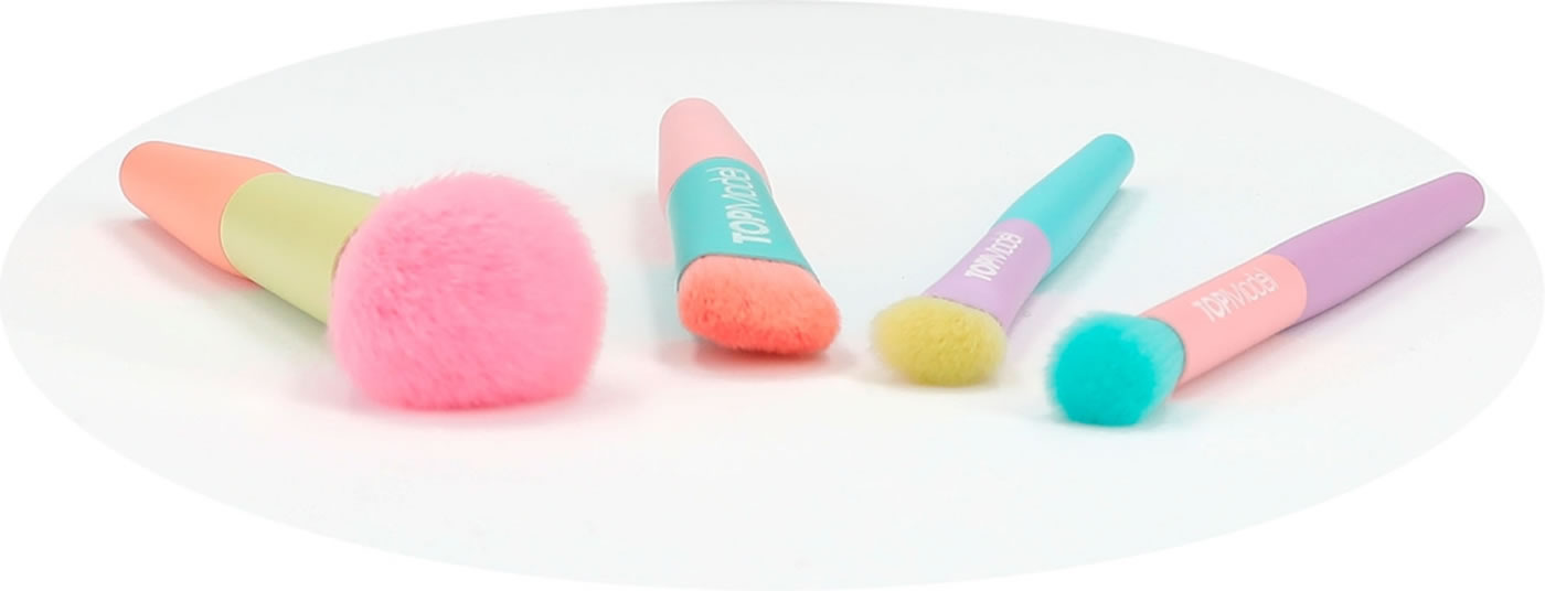 Step in makeup the right brush. It comes with a large powder brush, an eye shadow applicator, a medium blush brush and a small foundation brush.