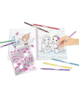 In the coloring book you will find many pictures for coloring and a sticker sheet.