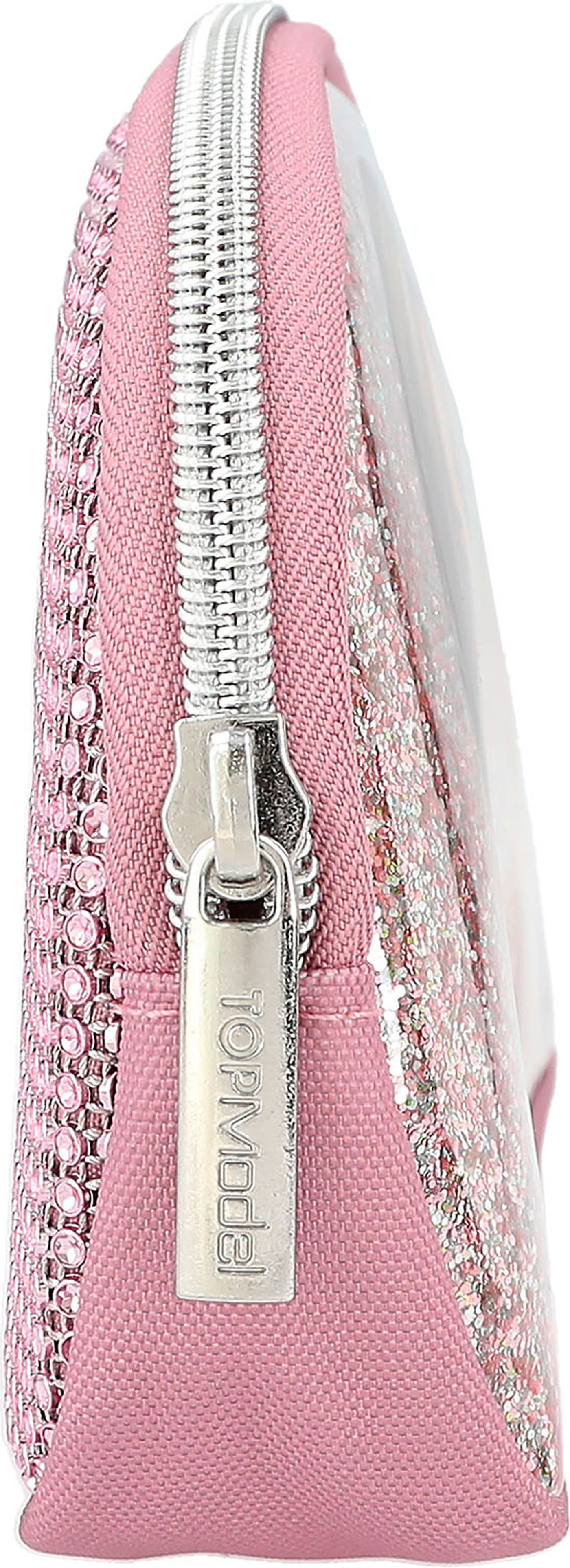 Glitter, glamour, awesome! The TOPModel cosmetic bag has a great model motif against a brilliant glitter background. The back of the bag is completely covered with rhinestones. A sparkling fireworks display! With zipper and enough space for beauty essentials.