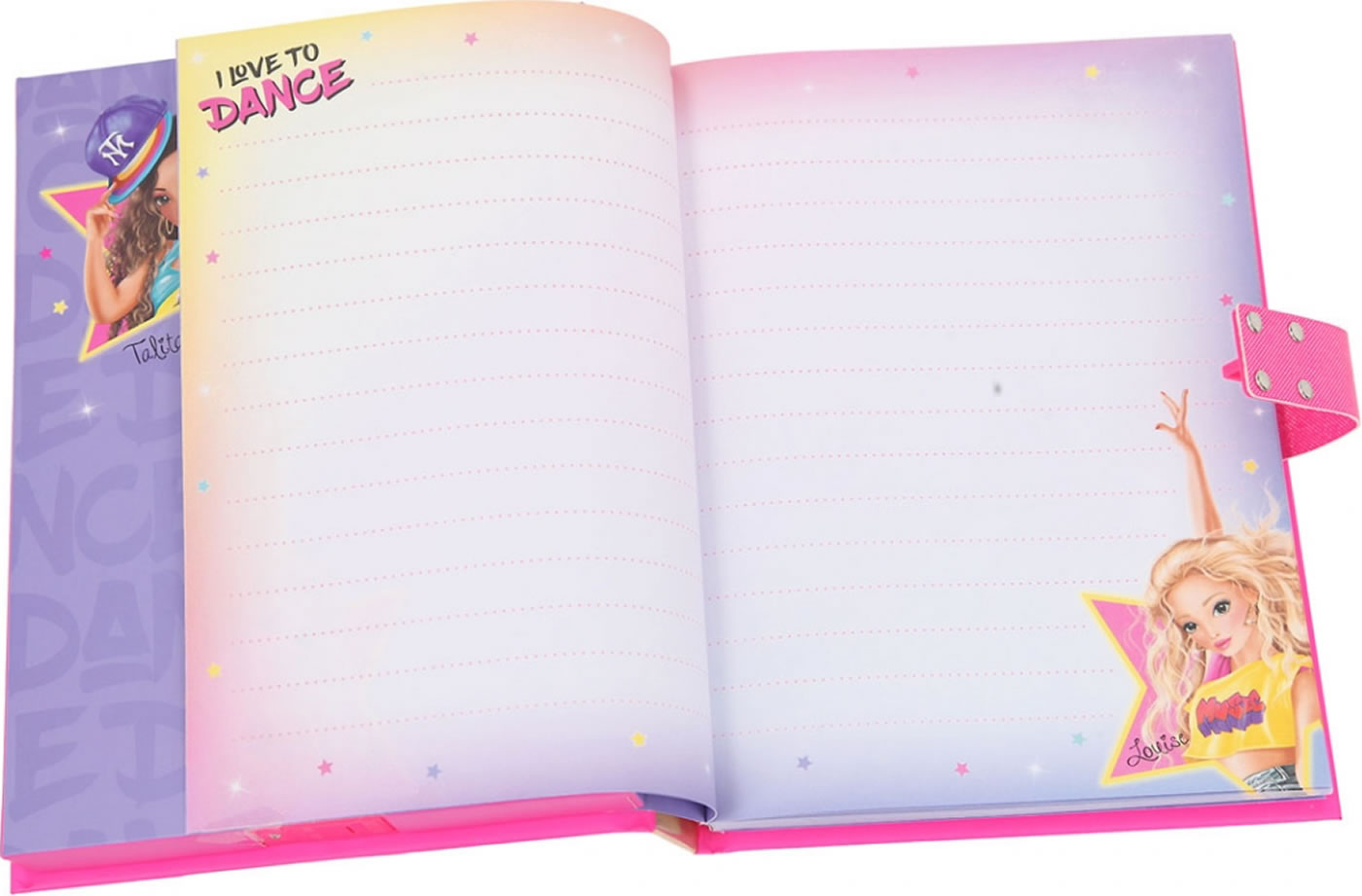 You'll find enough space for al your secrets on the 80 colourful printed pages. Safely stored are they behind the code lock. While opening the great song "Don´t call me up" starts to play for approx. 20 seconds.