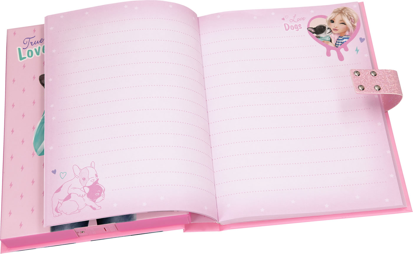 You'll find enough space for al your secrets on the 80 colourful printed pages. Safely stored are they behind the code lock. While opening the great song ¨Let you love me¨ starts to play for approx. 20 seconds.