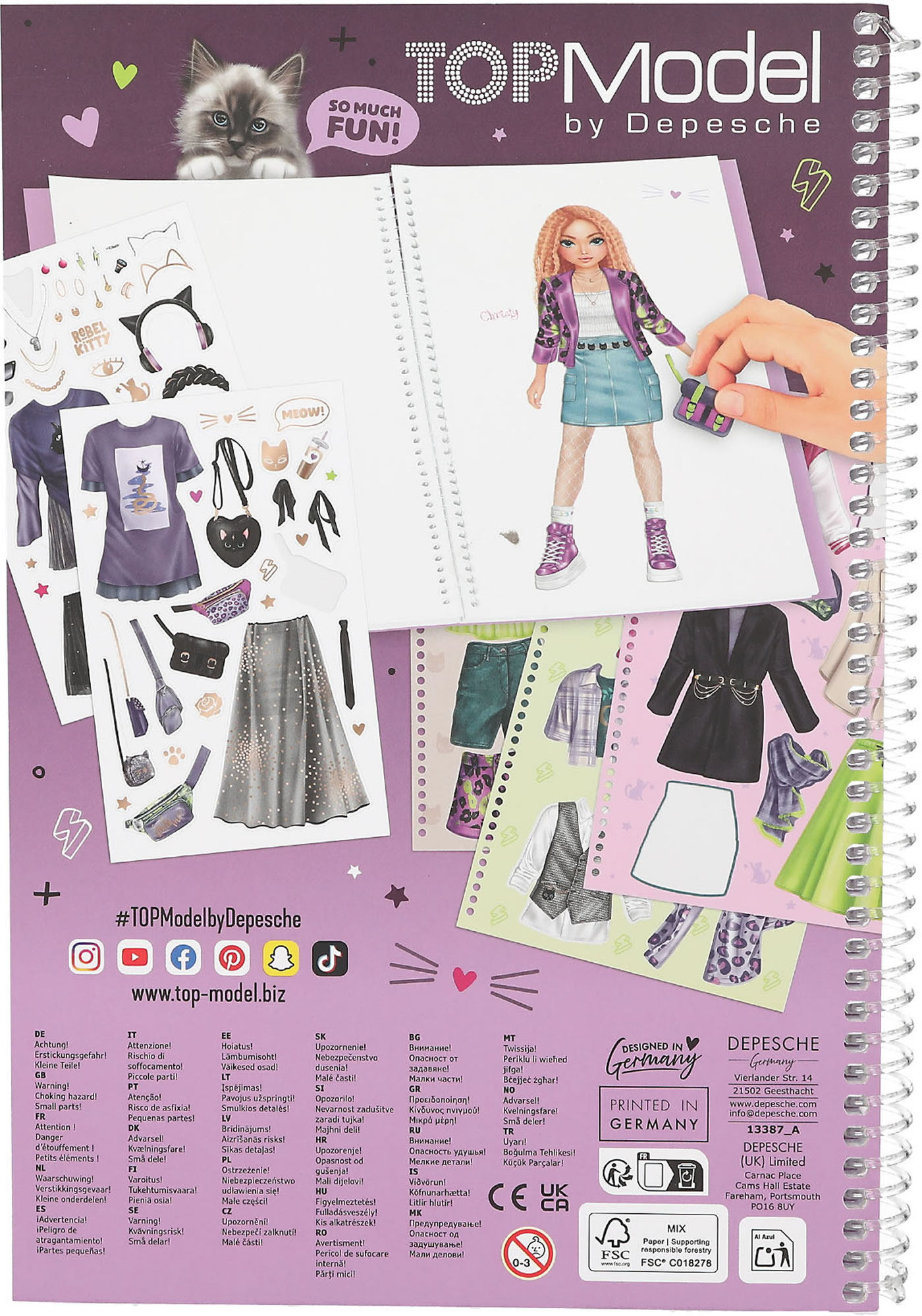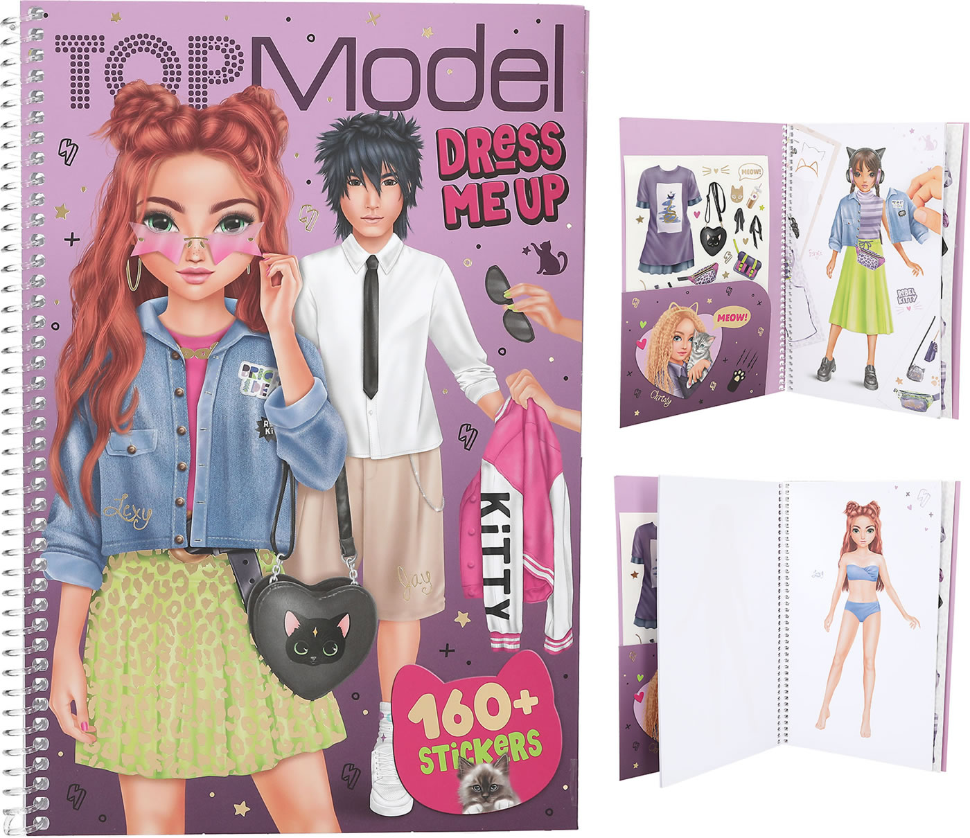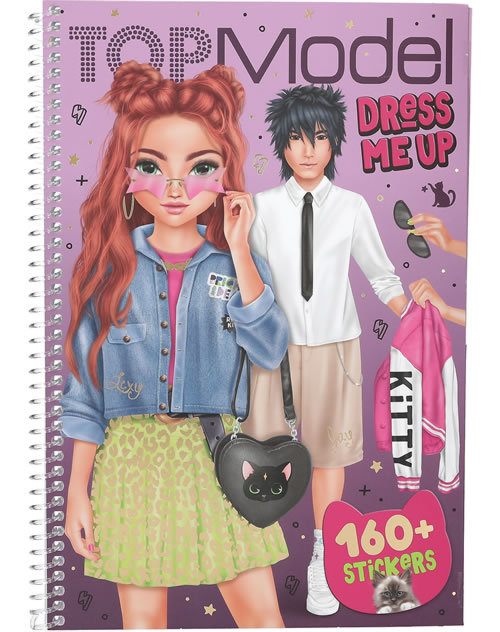 TOPModel Dress me up: the sticker book all about fashion and style, here with lots of kitten-inspired stickers. 20 pages with female and male TOPModel figures are waiting to be embroidered with cool looks (2 sheets of foil stickers, 5 sheets of paper stickers).