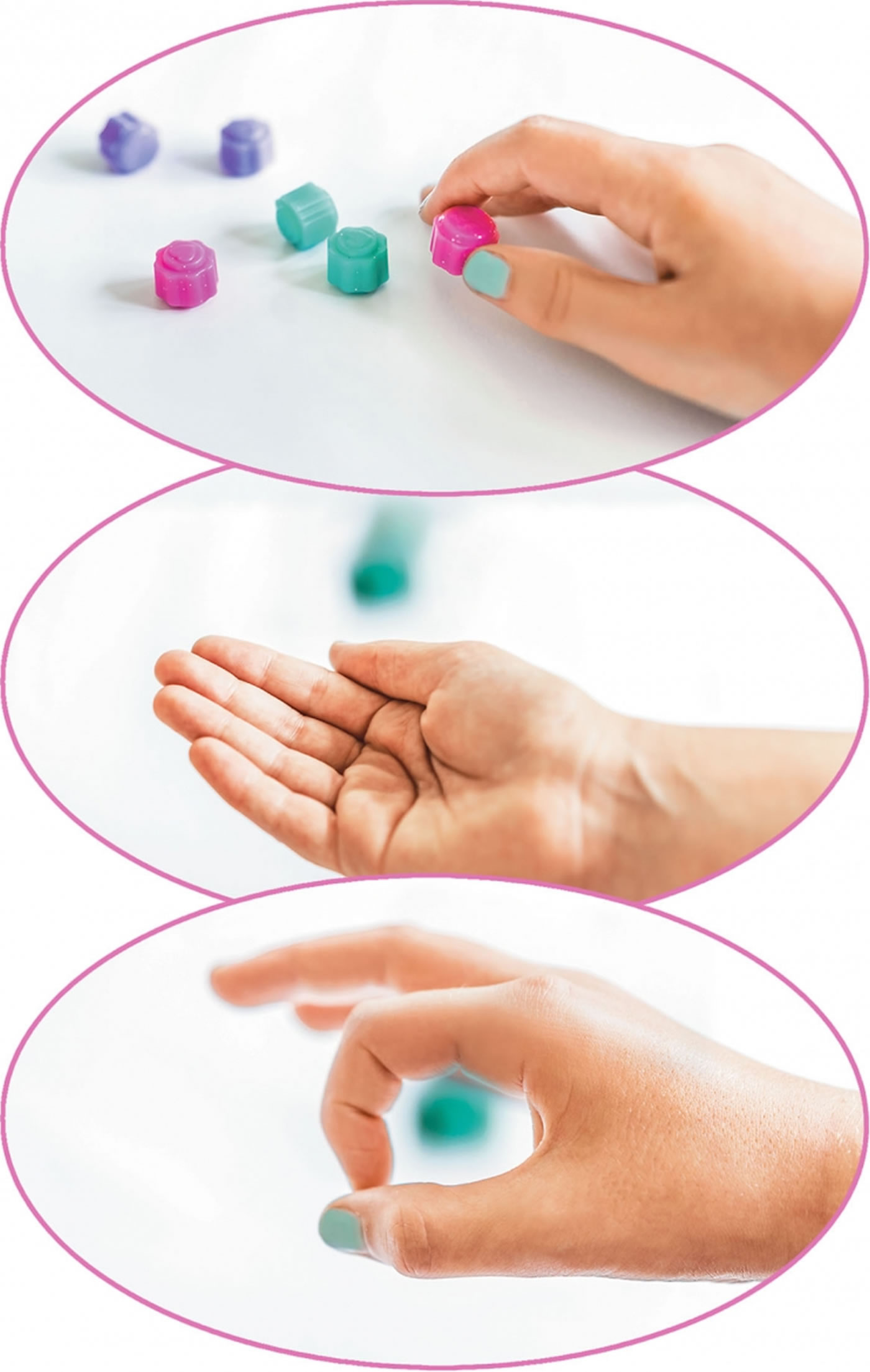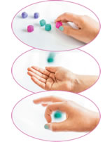 The game trend from Asia: Fidget-Fun from TOPModel consists of 6 colorful game pieces (2x pink, 2x purple, 2x turquoise) that are used in different games of skill.