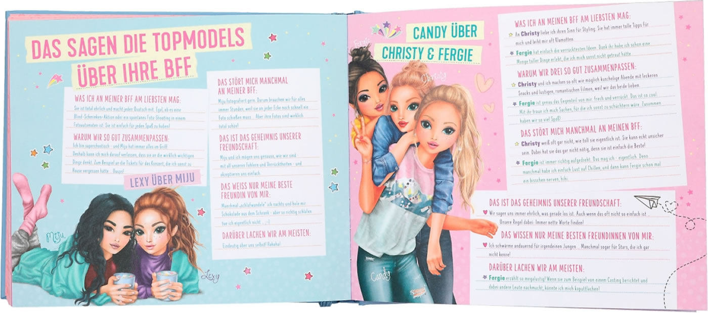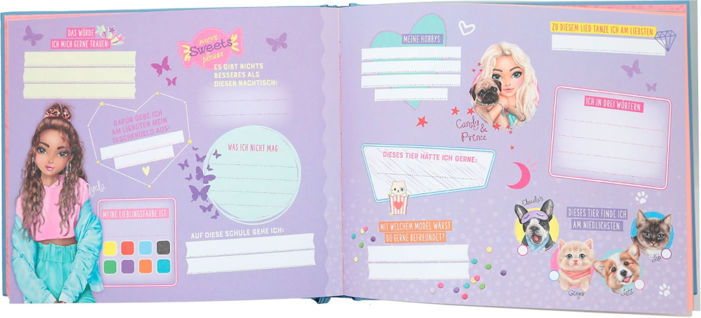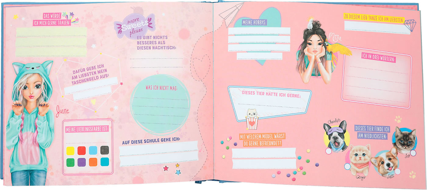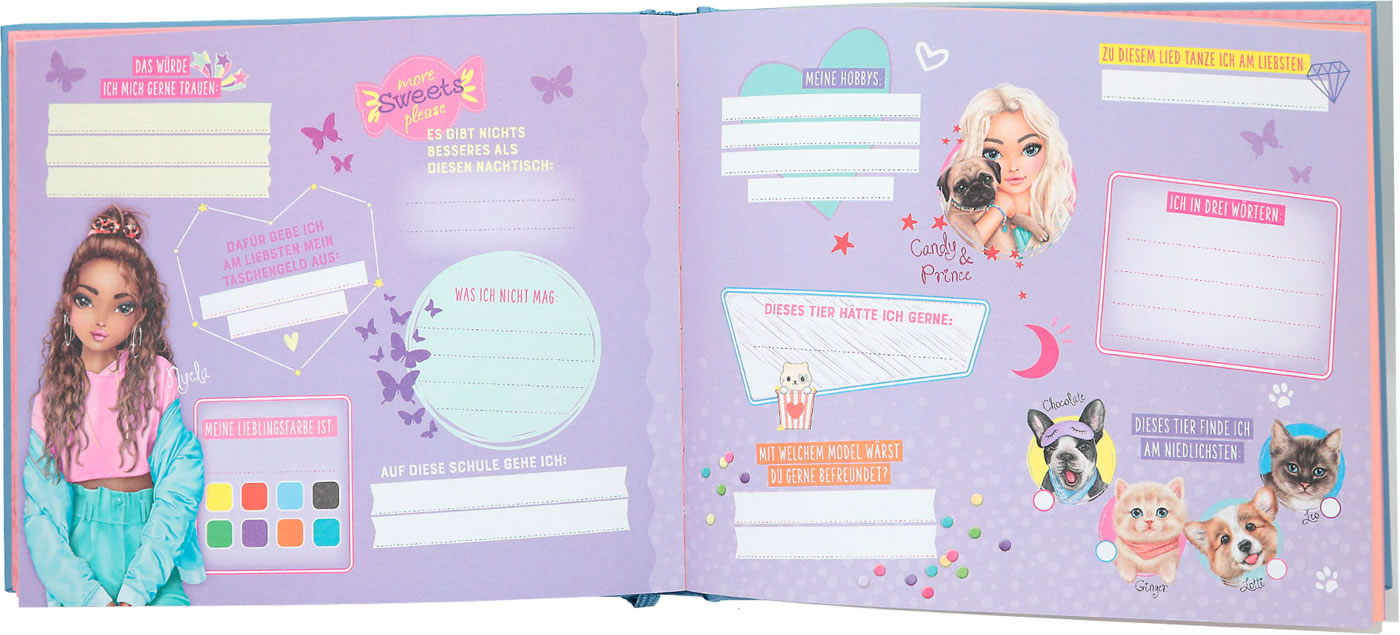 The TOPModel friend book Cutie Star: padded cover and 108 pages full of exciting questions for the BFFs to fill out and tick. Lovingly designed with stylish TOPModel motifs and cute kittens.