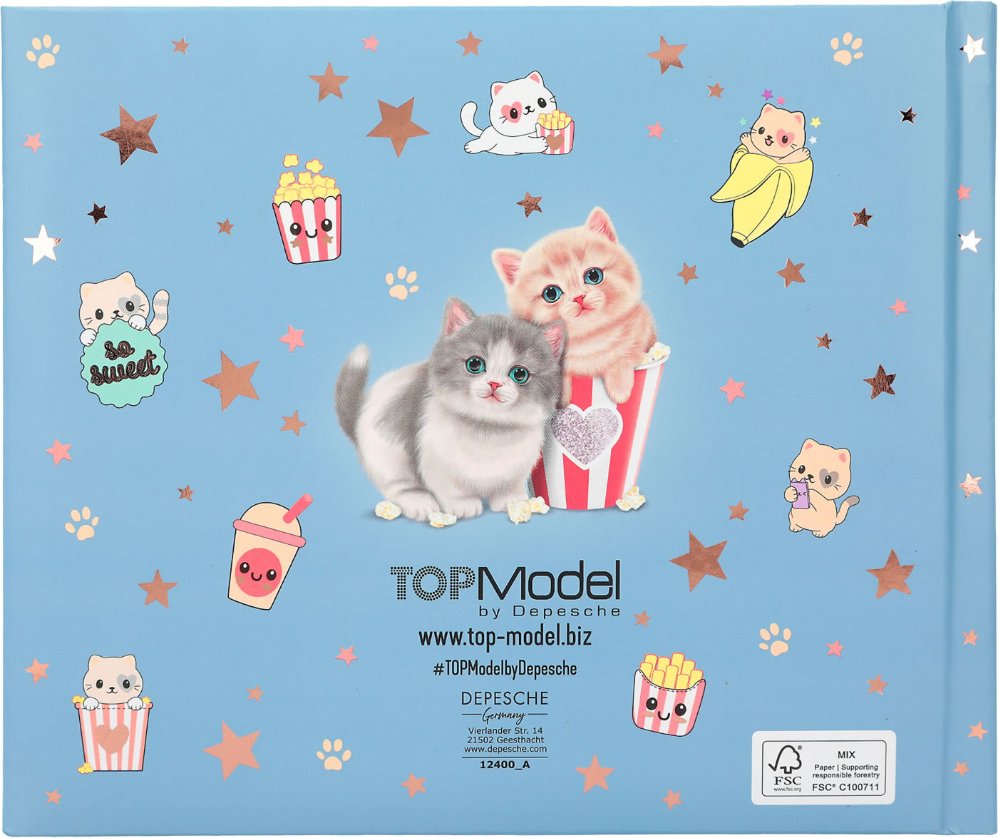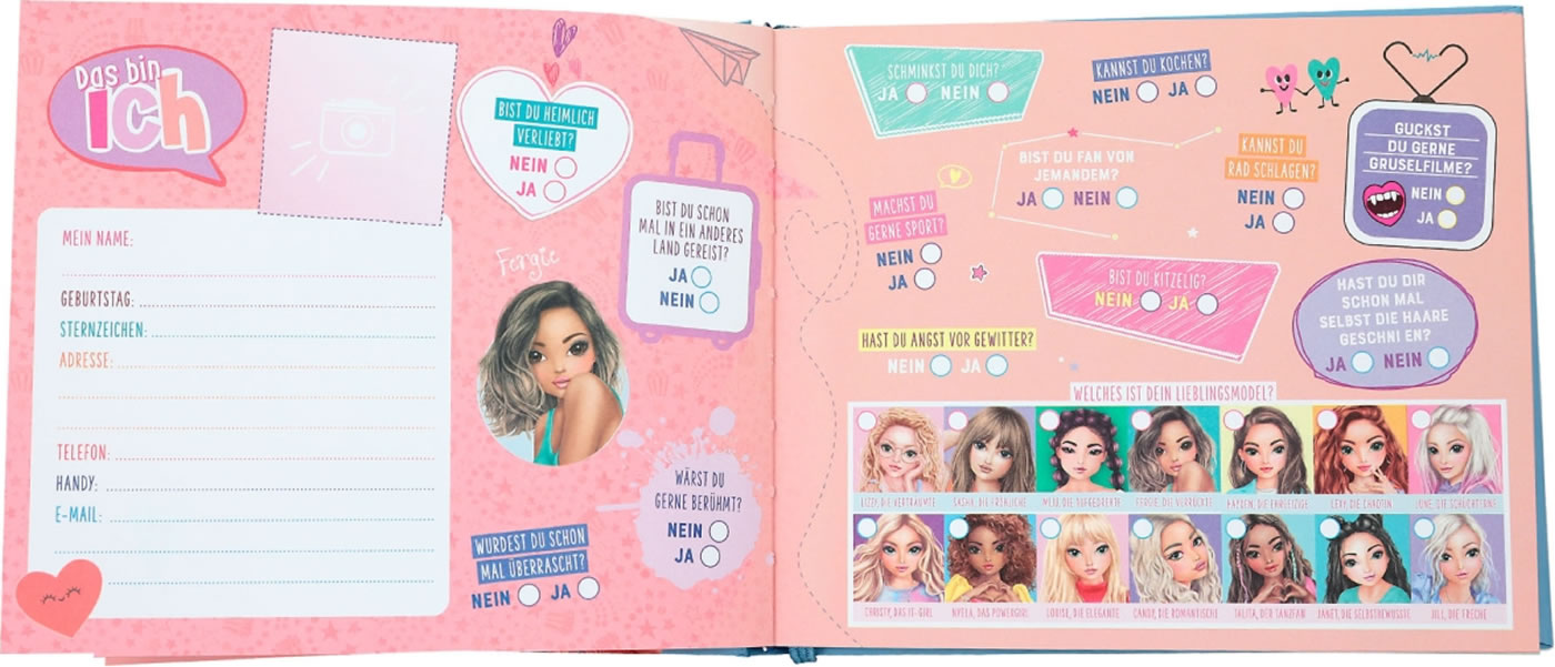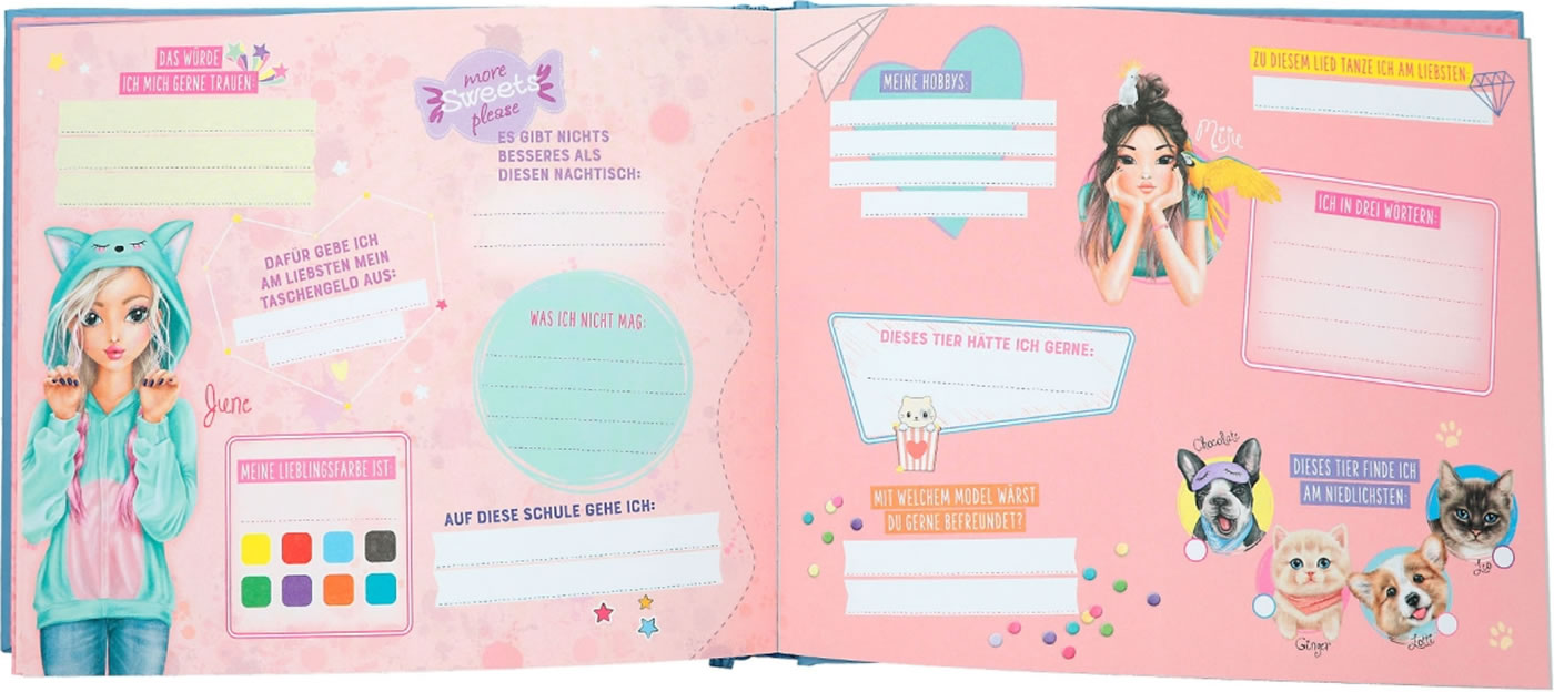 The TOPModel friend book Cutie Star: padded cover and 108 pages full of exciting questions for the BFFs to fill out and tick. Lovingly designed with stylish TOPModel motifs and cute kittens.