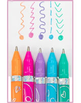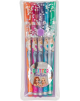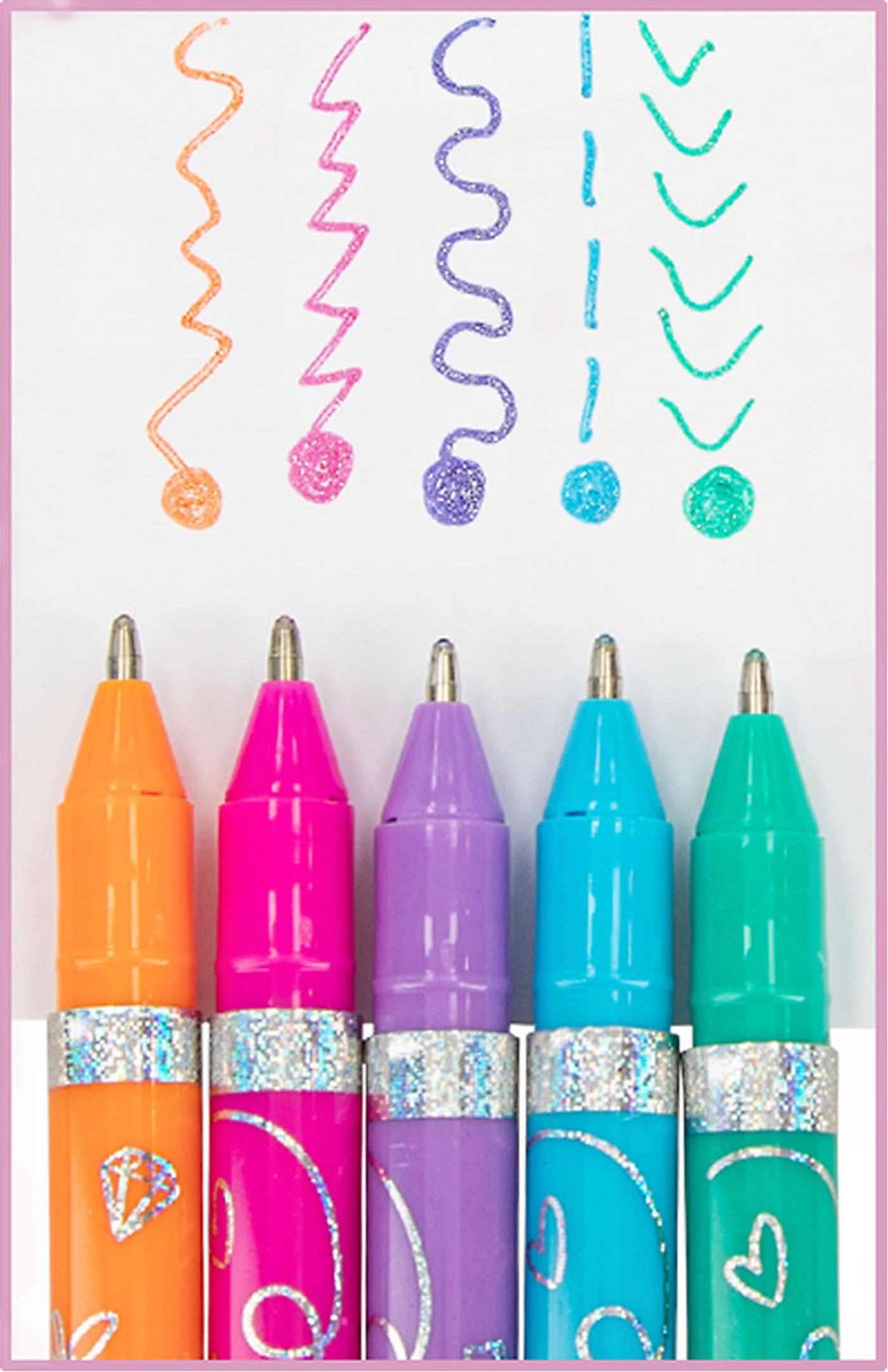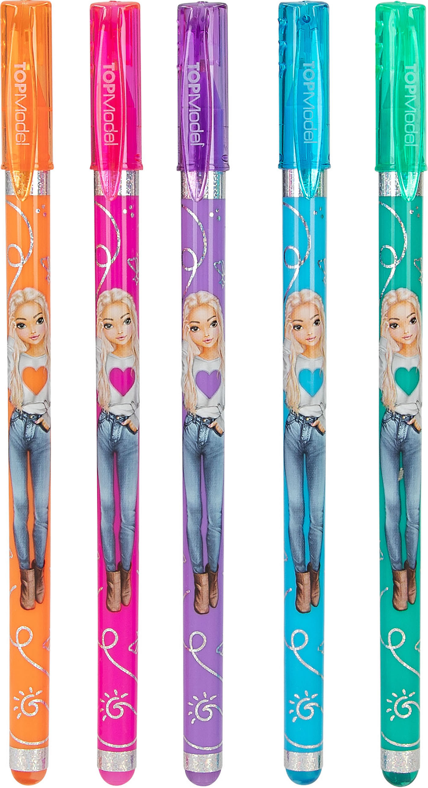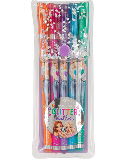 Write and paint fun with the TOPModel glitter pens in orange, pink, purple, blue and green. Packaged in a clear pouch with silver holo confetti in the flap. The mines are not interchangeable.