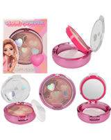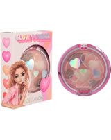 For a very special glow on the face: The TOPModel shimmer powder in a round folding container gives a subtle color shine in different skin and brown tones. With a slightly raised heart pattern in the powder as well as a mirror and a sponge.