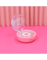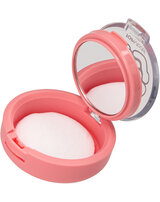 The round powder compact has a transparent lid, and underneath the powder is a sponge and a mirror. Contents: 6 g