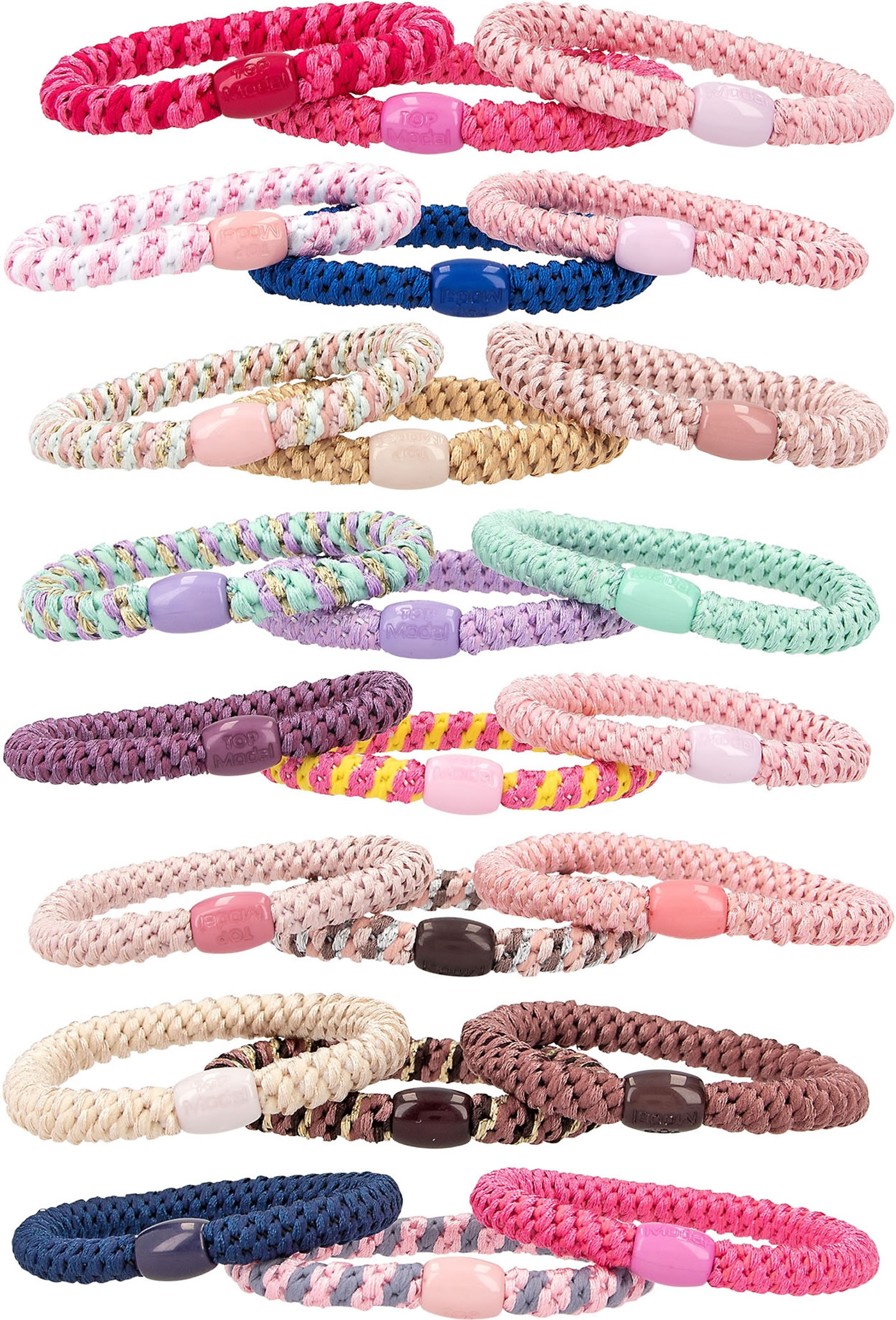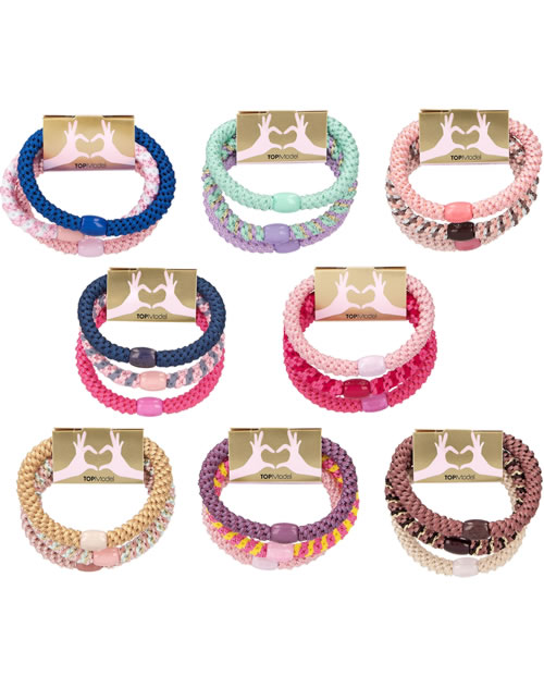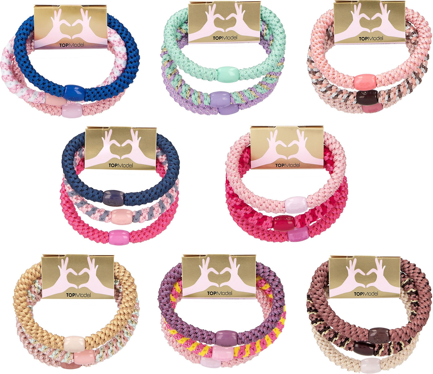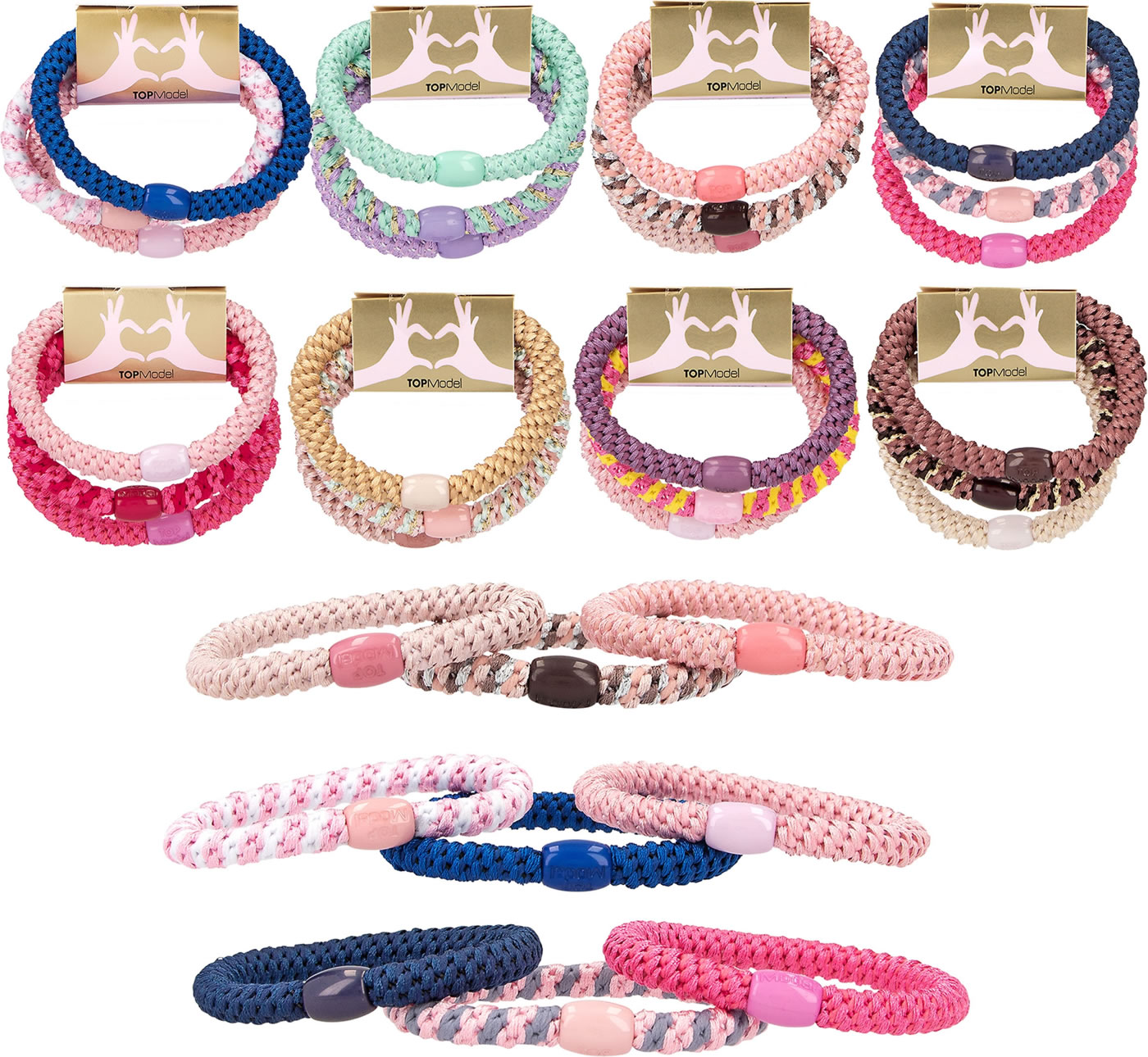 The absolute trend hair ties in a large selection of colors: Each TOPModel set includes 3 braided hair ties with color-coordinated pearls. Great in your hair, but just as pretty as a bracelet. Material: 100 percent polyester, rubber