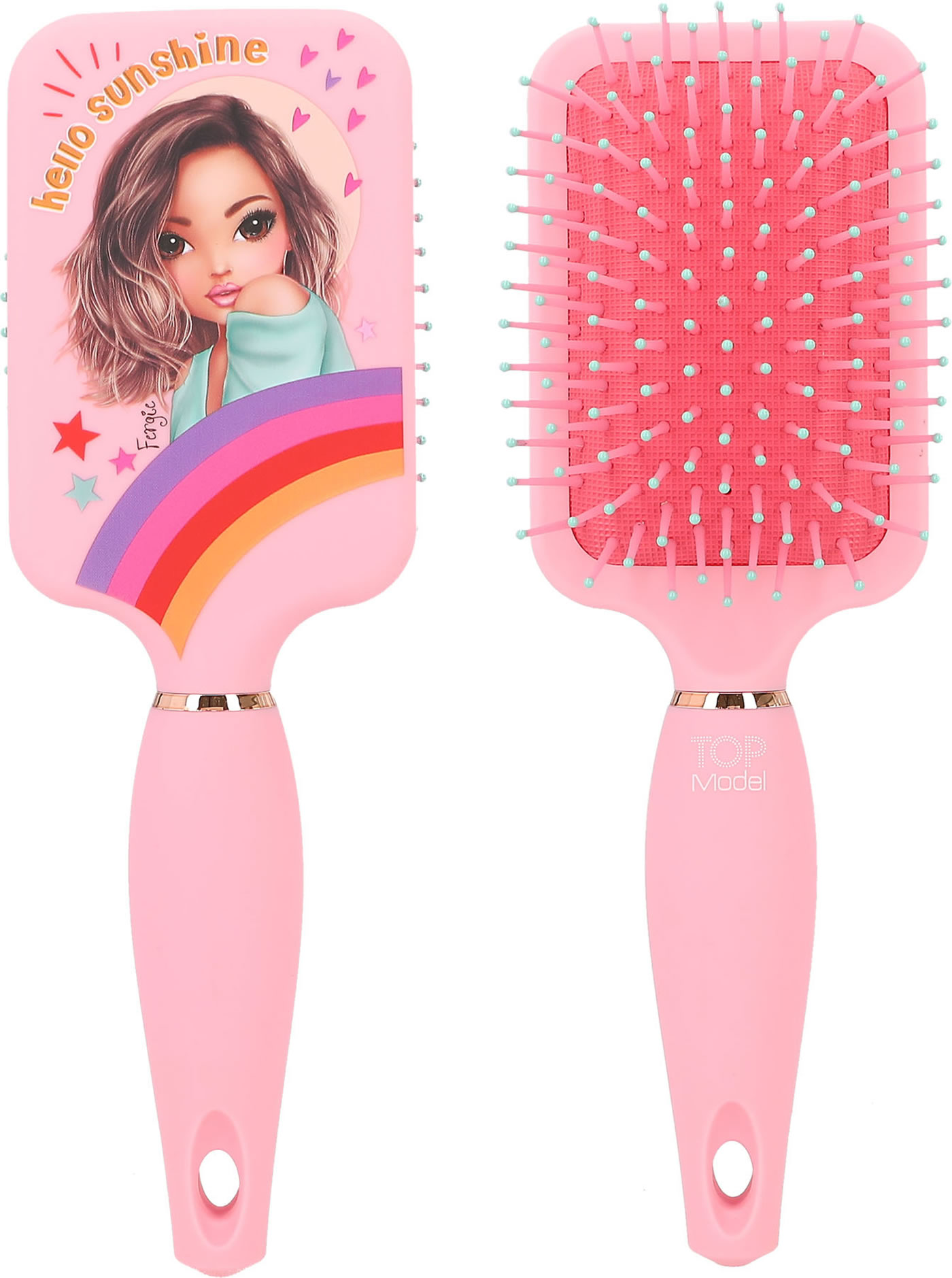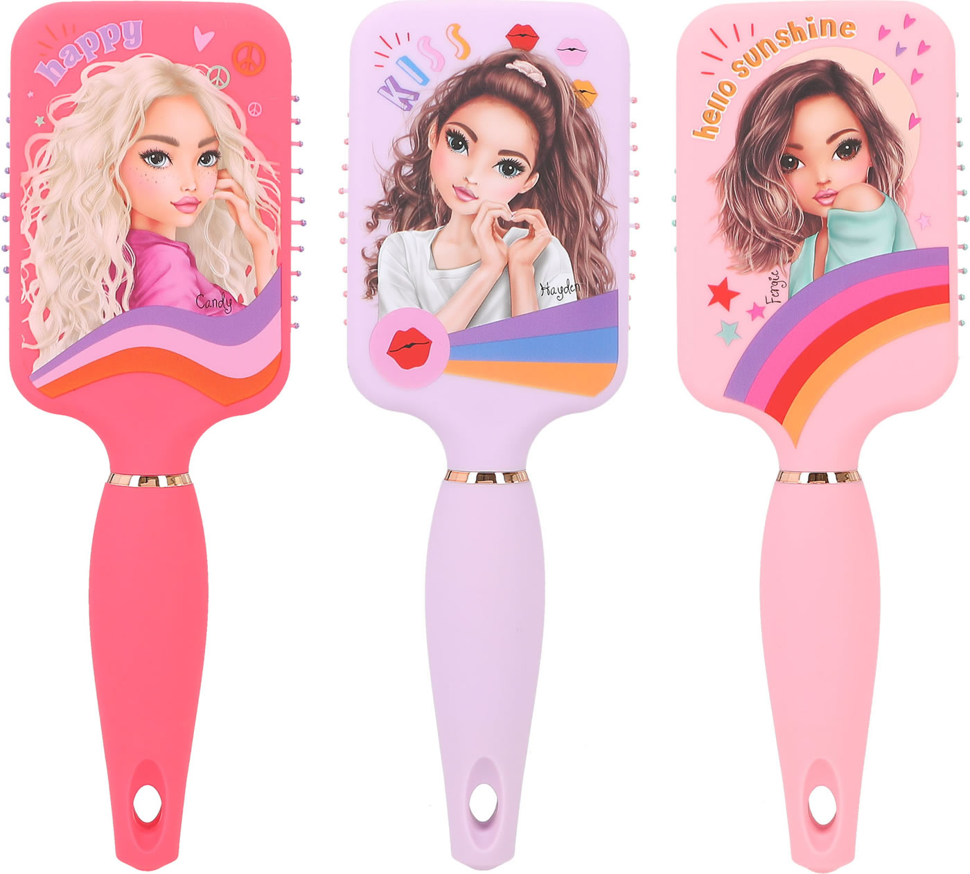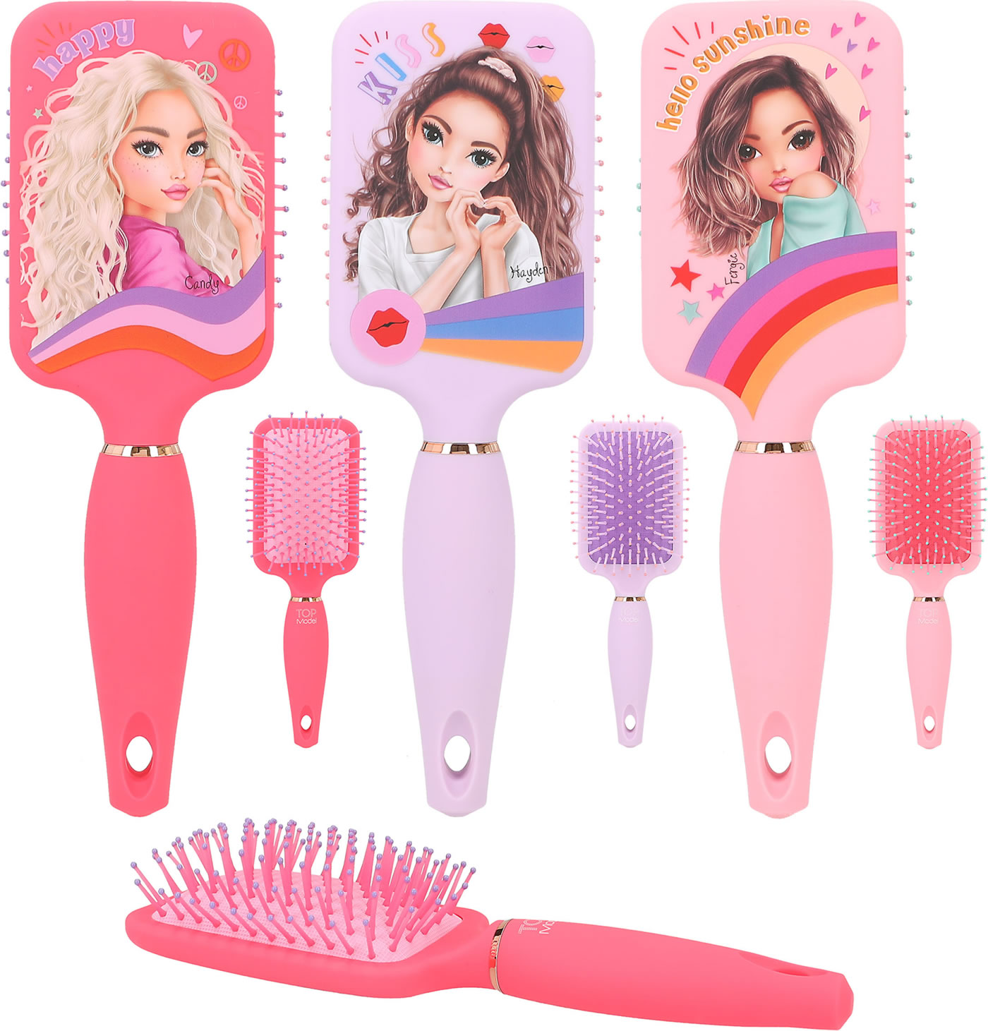 For TOPModel beautiful hair: The hairbrushes in a classic paddle shape, here in a slightly smaller, child-friendly size, have a rubberized surface for a cool look and a soft grip. Available in pink, purple and coral, each with a stylish model motif and cute icons. The high-quality bristle mix made of nylon and plastic is suitable for all hair lengths, but especially for longer hair.