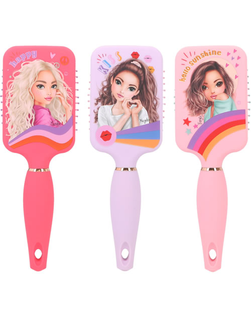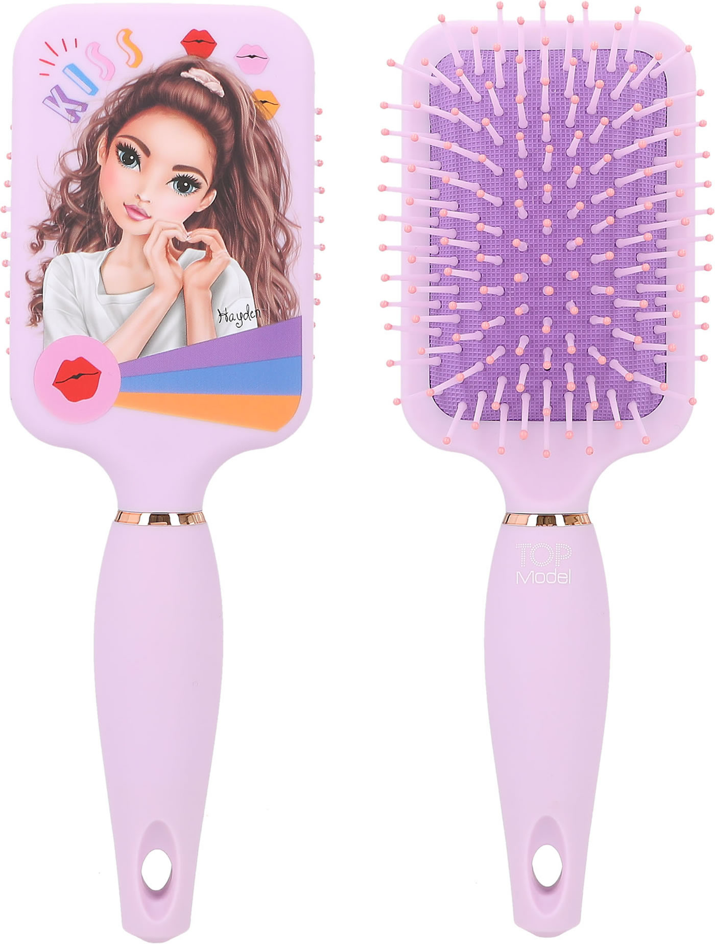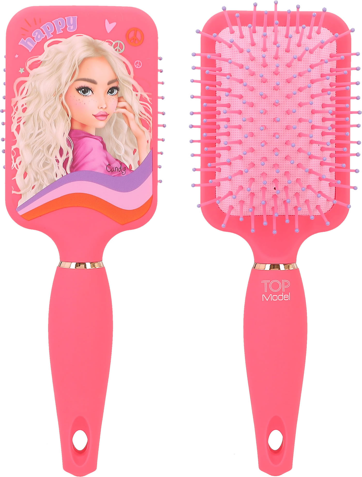 For TOPModel beautiful hair: The hairbrushes in a classic paddle shape, here in a slightly smaller, child-friendly size, have a rubberized surface for a cool look and a soft grip. Available in pink, purple and coral, each with a stylish model motif and cute icons. The high-quality bristle mix made of nylon and plastic is suitable for all hair lengths, but especially for longer hair.