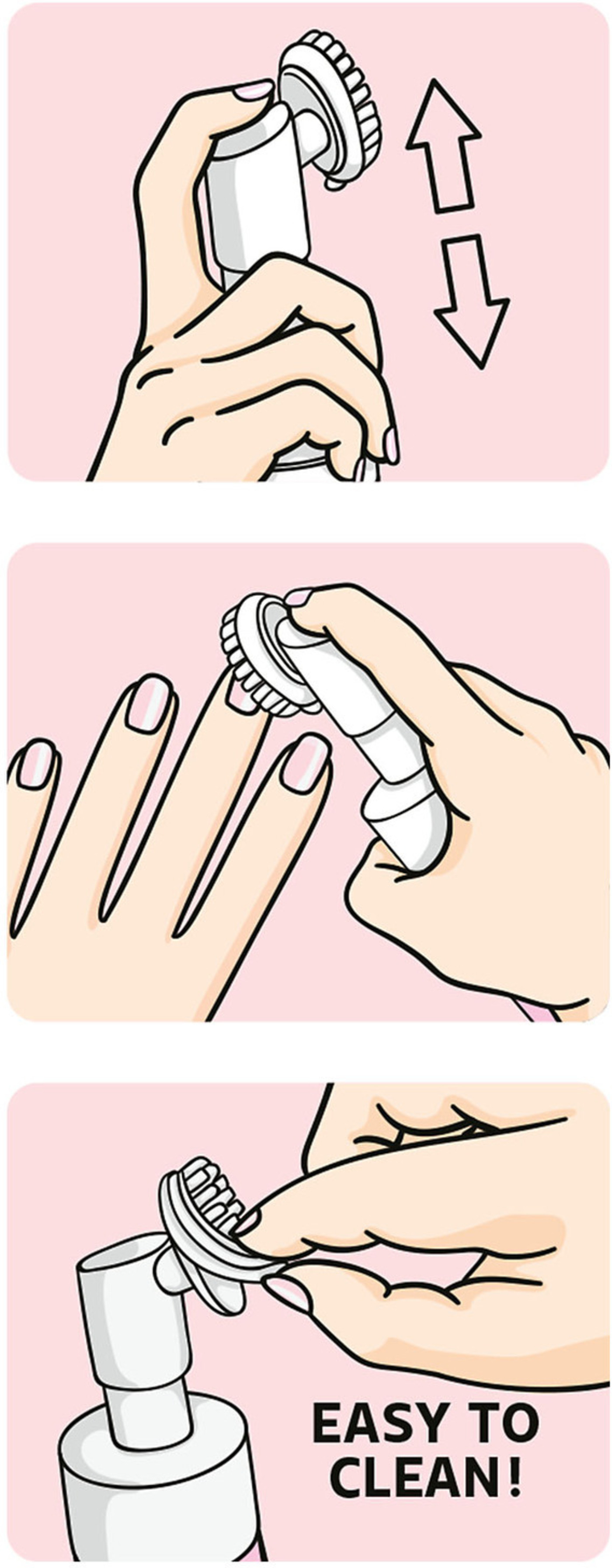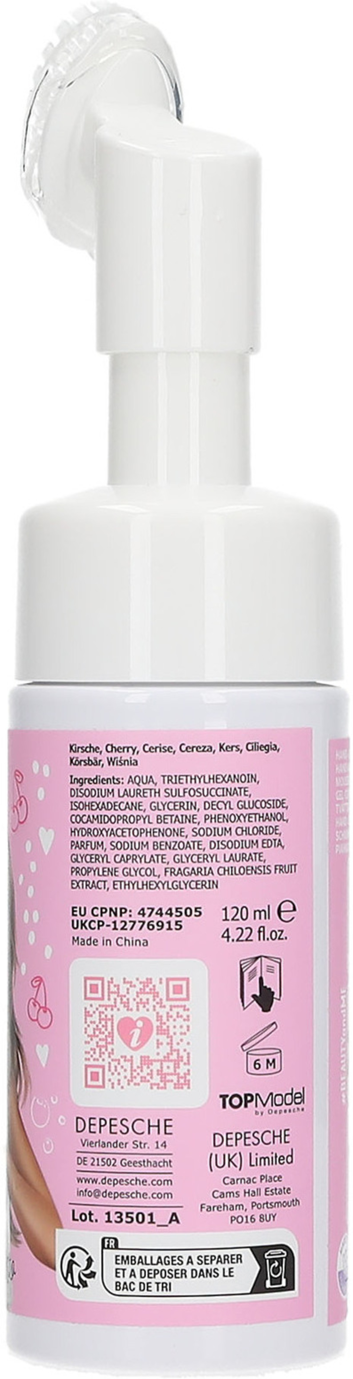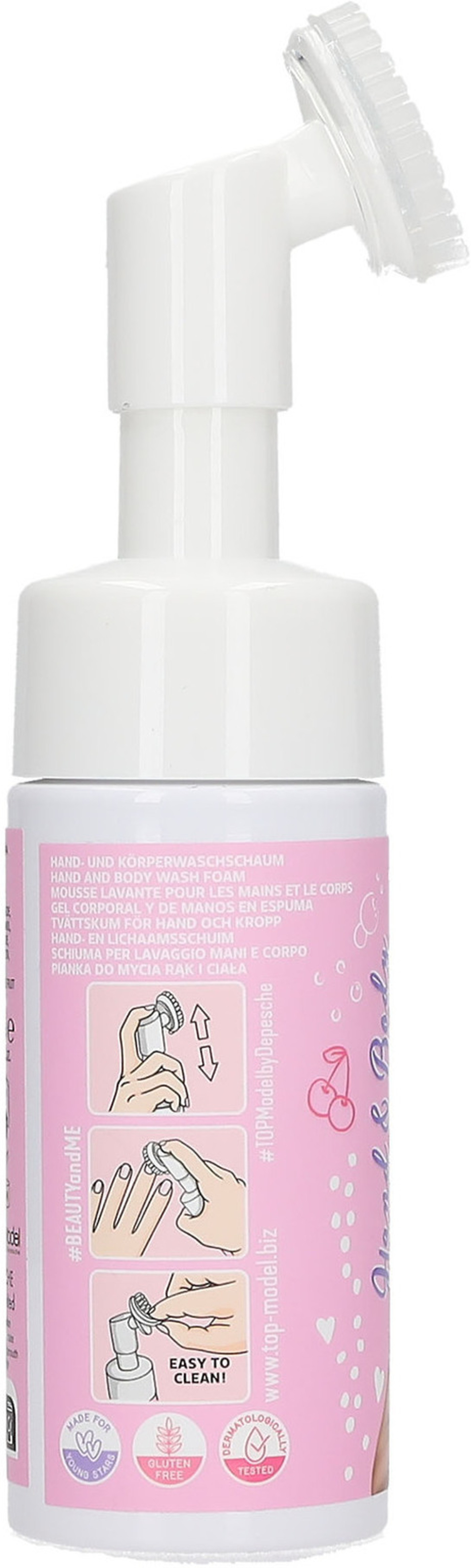 Foamy and beautiful: The pump head with a soft silicone brush creates gentle washing foam for hands and body with a delicate fruity scent. From TOPModel. Contents: 120 ml.