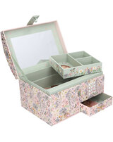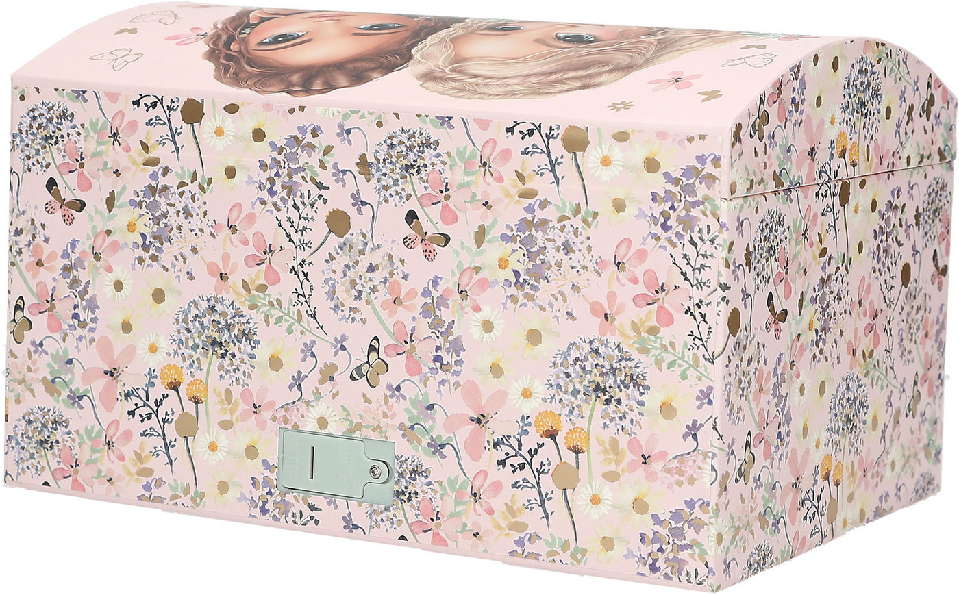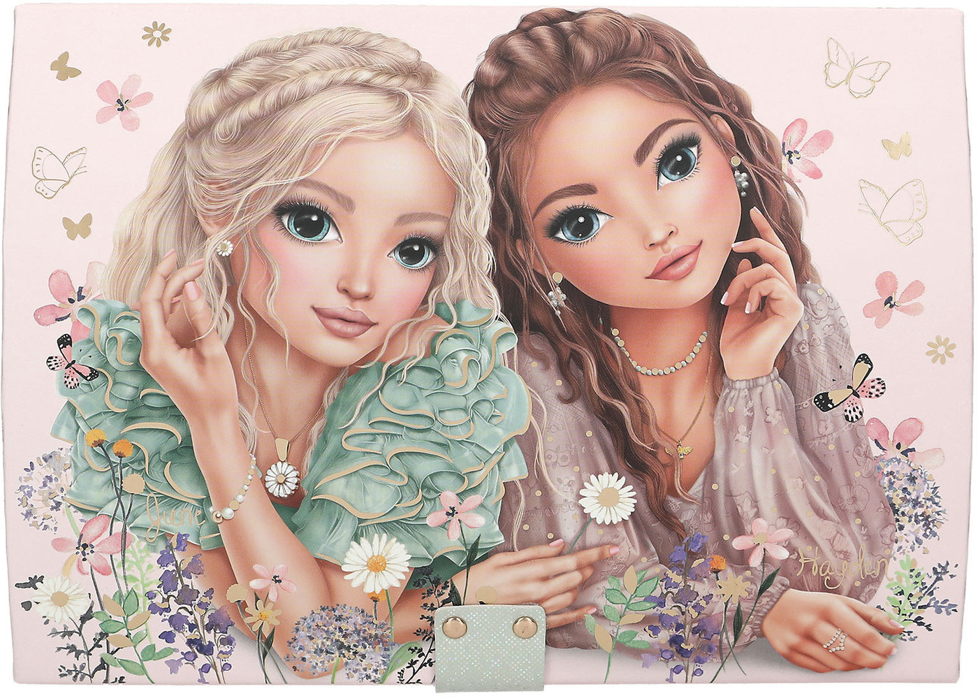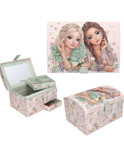 The pretty TopModel jewelry box is perfect as a storage for your jewelry. It has a large main compartment and a small removable compartment with 3 compartments. There is also a mirror in the lid.