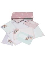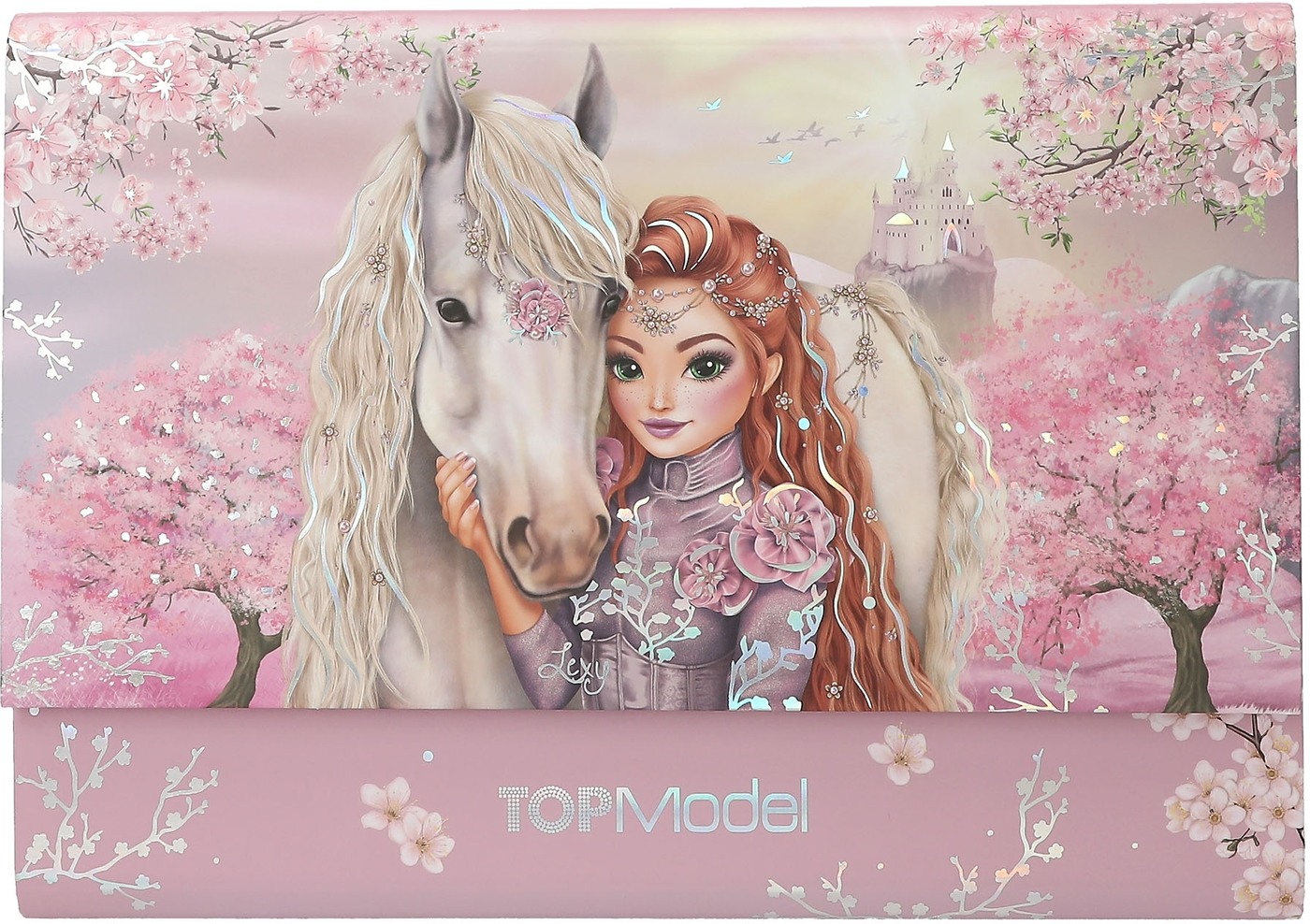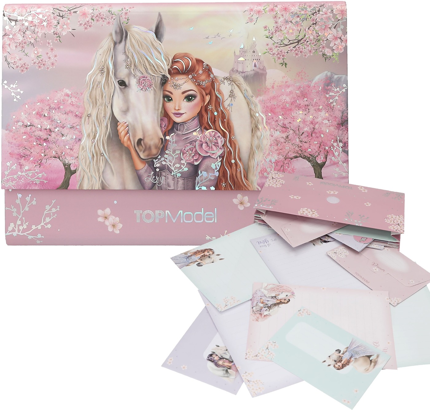 Soft colors, delicate flowers, proud horses, and princess-like TOPModels. The set includes 24 sheets of stationery