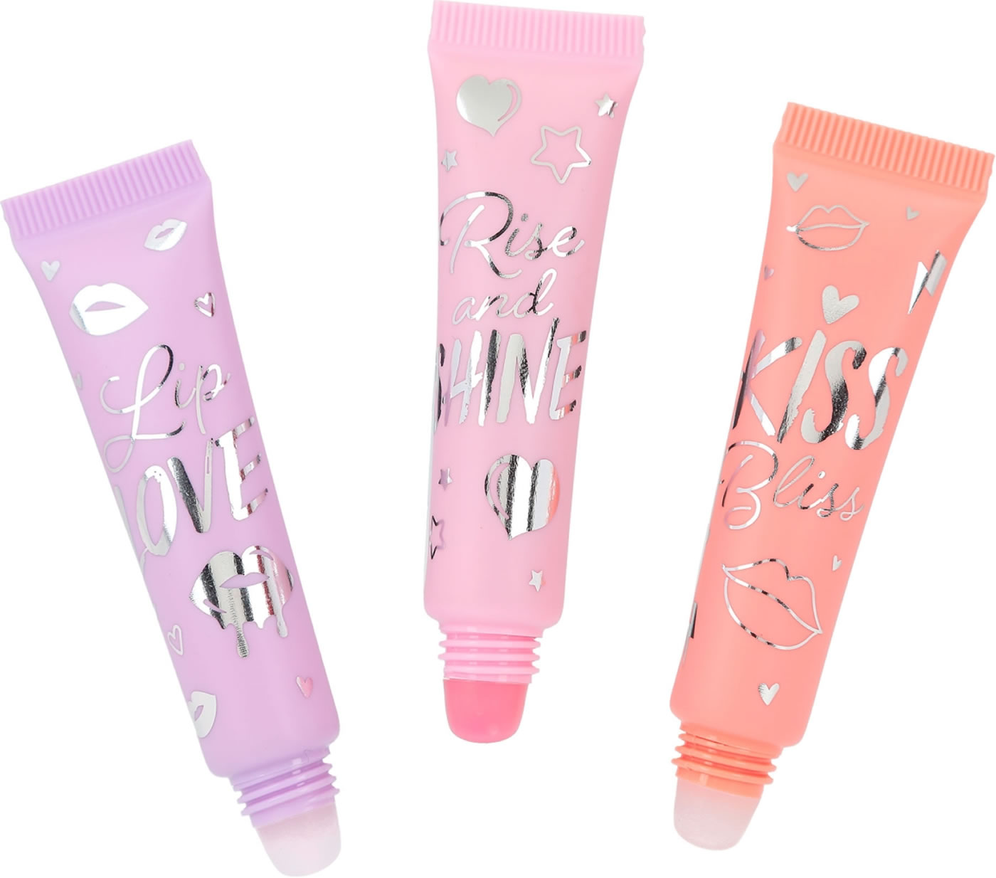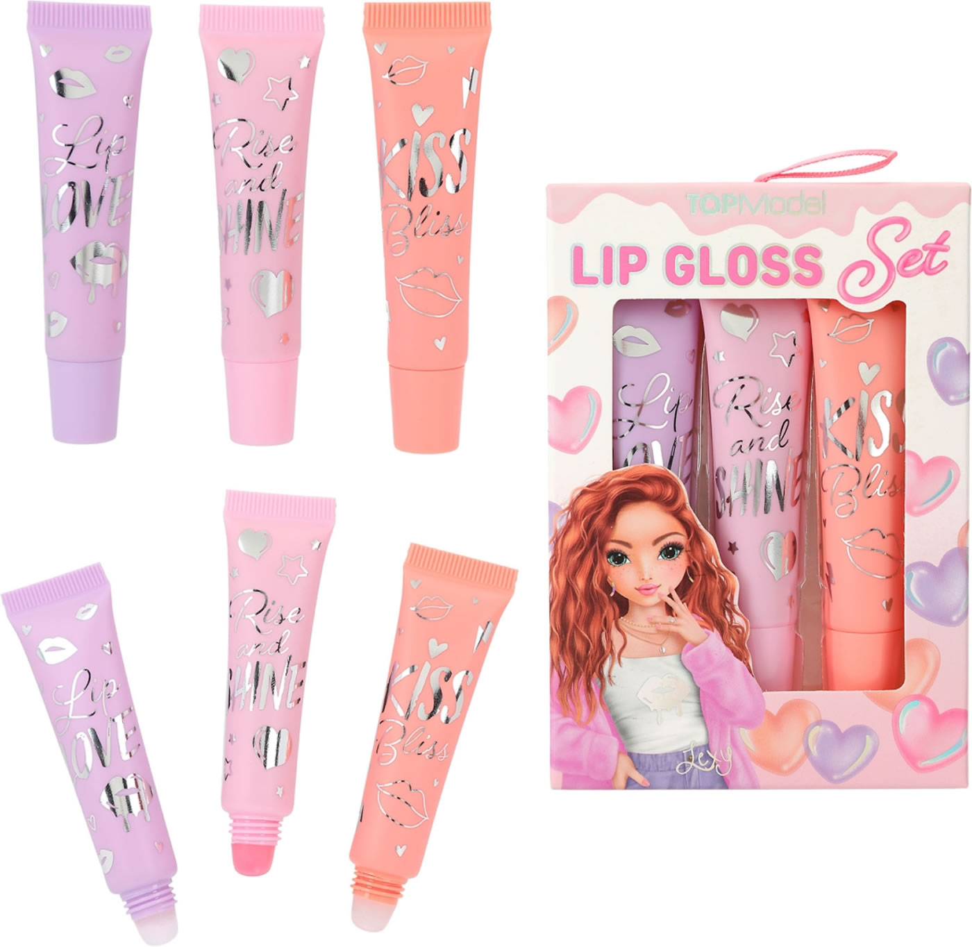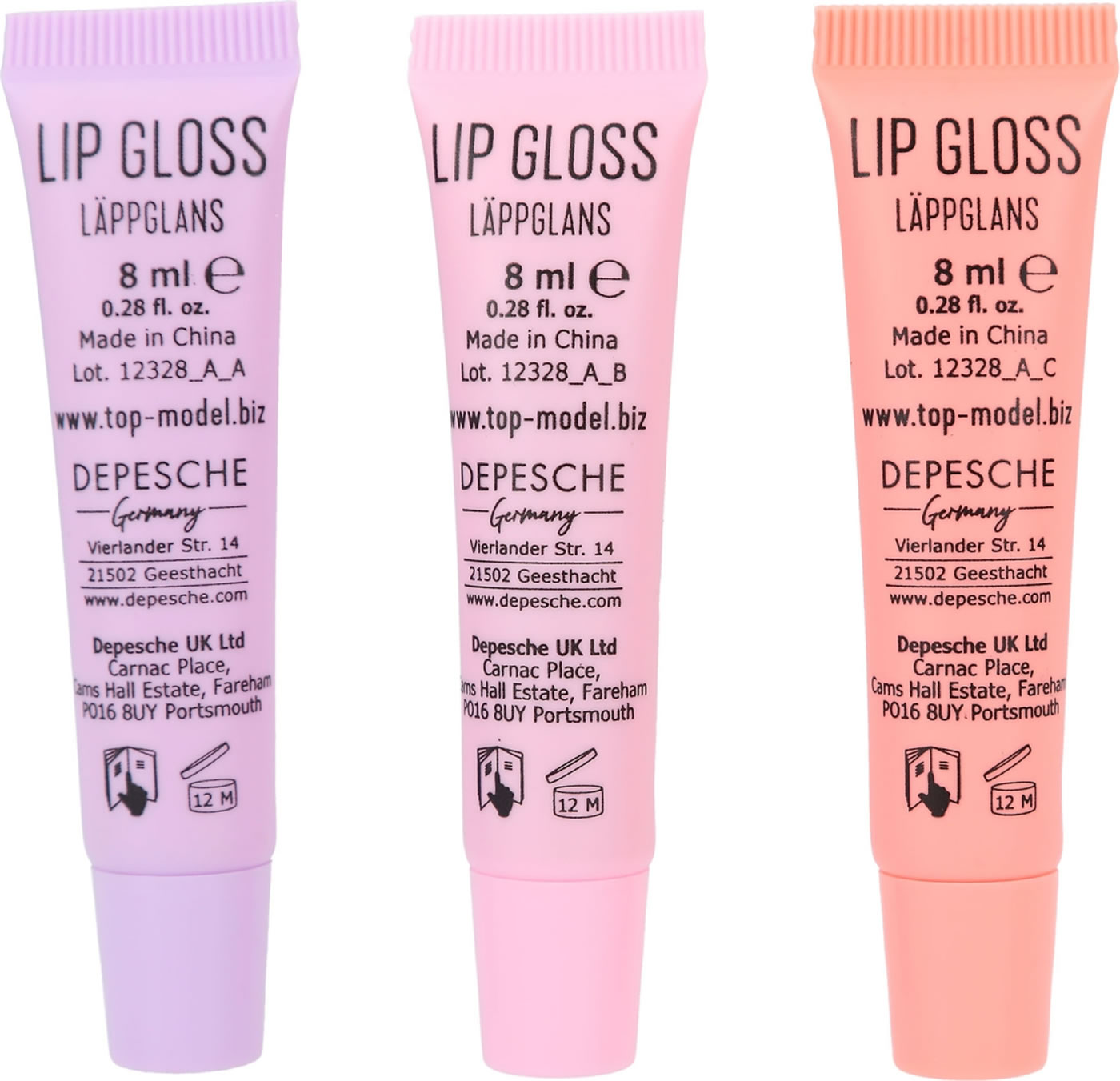 Beauty and me: the lip set from the TOPModel beauty series includes 3 tubes of lip gloss in the colors lilac, pink and peach, which conjure up a shimmering hint of color on the lips and also smell wonderful (lilac-colored like cola, pink like apple, peach-colored after peach). Content per tube: 8 ml.