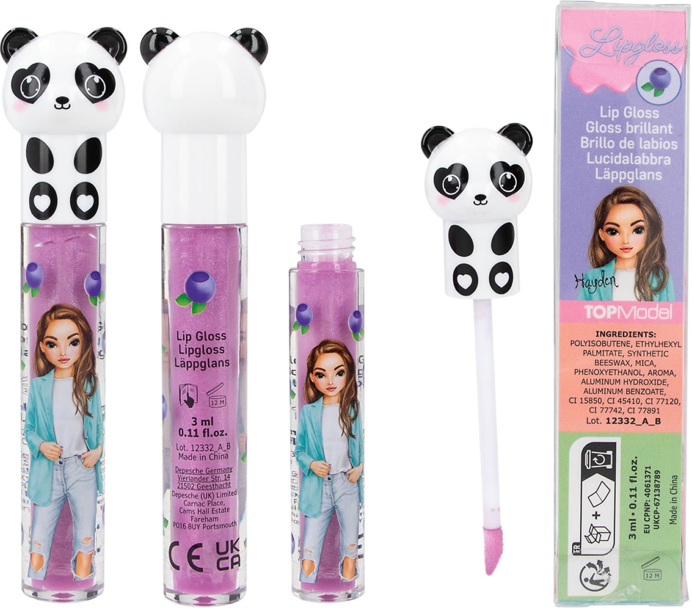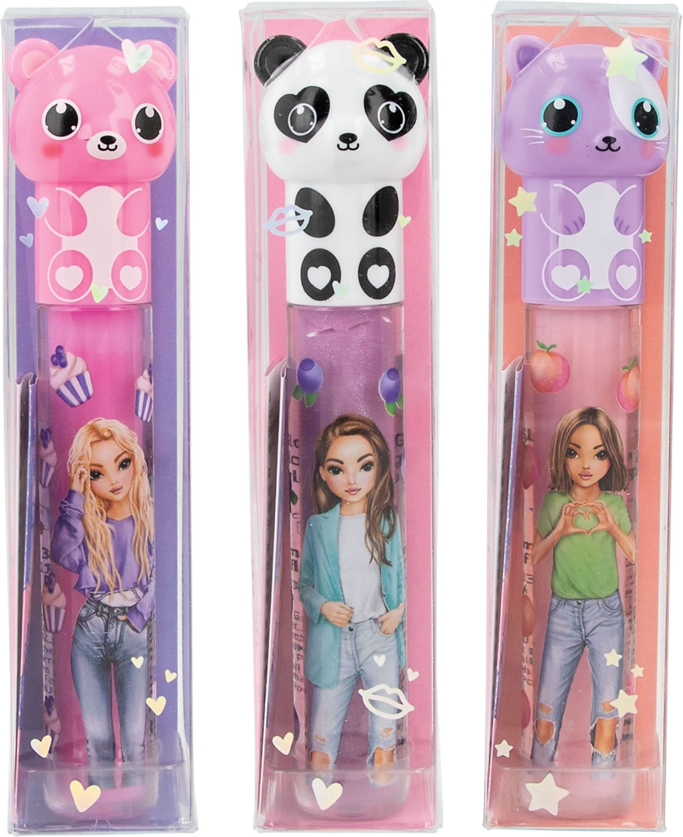 Beauty and me: The lip glosses from the TOPModel Beauty series with their cute animal caps not only give your lips a soft shimmer, they also smell wonderful. Available in three designs: teddy with pink lip gloss and blueberry muffin scent, panda with pale purple lip gloss and blueberry scent, and cat with peach lip gloss and peach scent. Each bottle contains 3ml of lip gloss and has an applicator in the lid for applying to the lips.