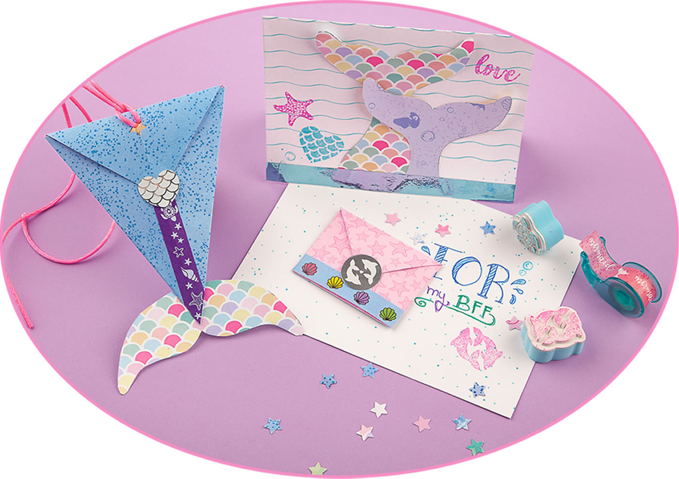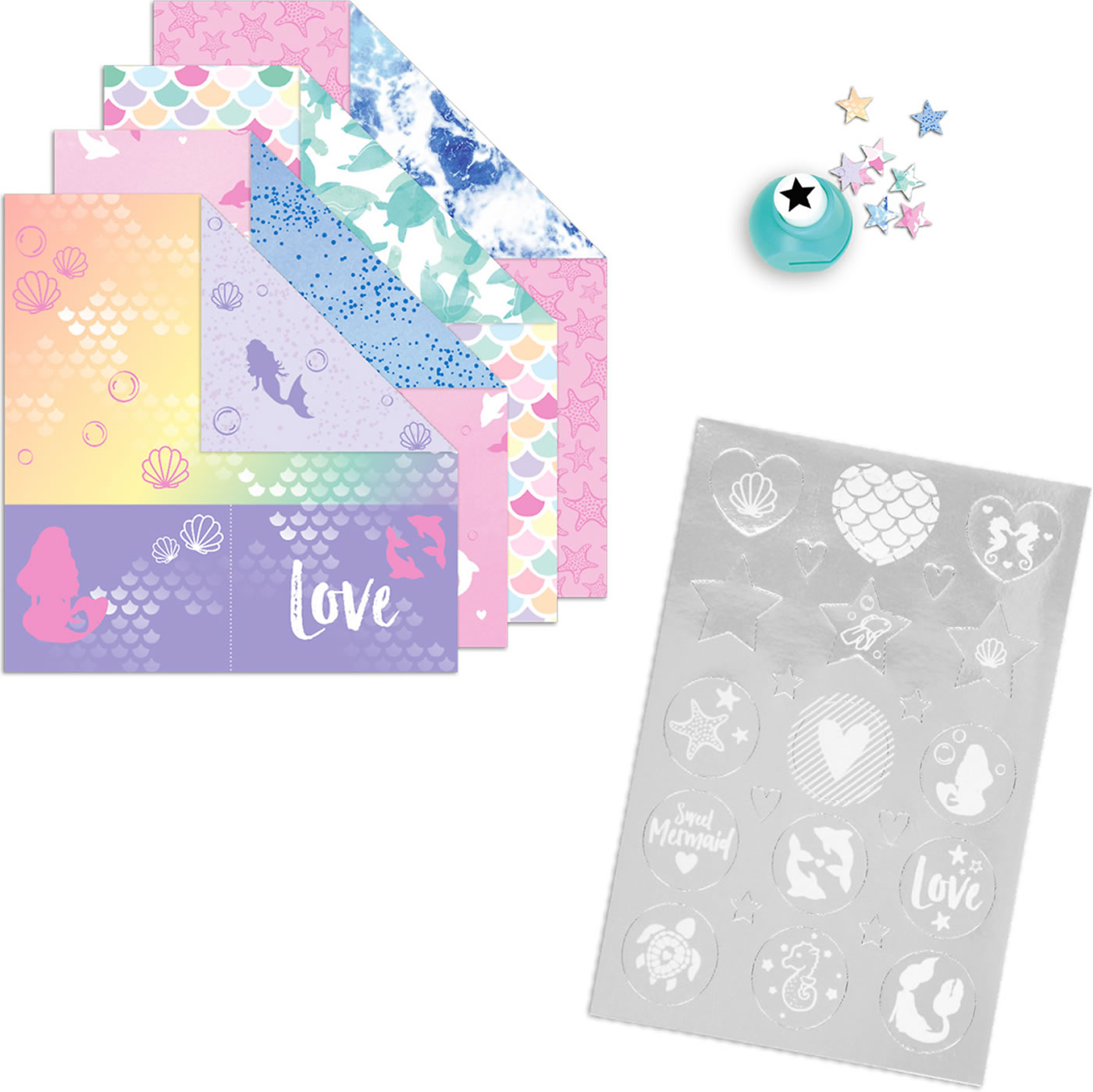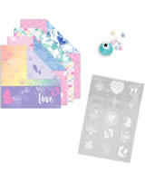 With the stamps you can decorate the notepapers and envelopes or with the colorful adhesive strips. From the colorful sheets can be cut out great designs or punch out with the hole punch.