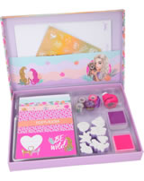 With the stamps you can decorate the notepapers and envelopes or with the colorful adhesive strips. From the colorful sheets can be cut out great designs or punch out with the hole punch.