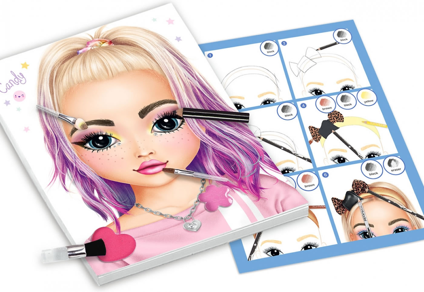 The painting block comes with templates and pictures to color your favorite TOPModel.
