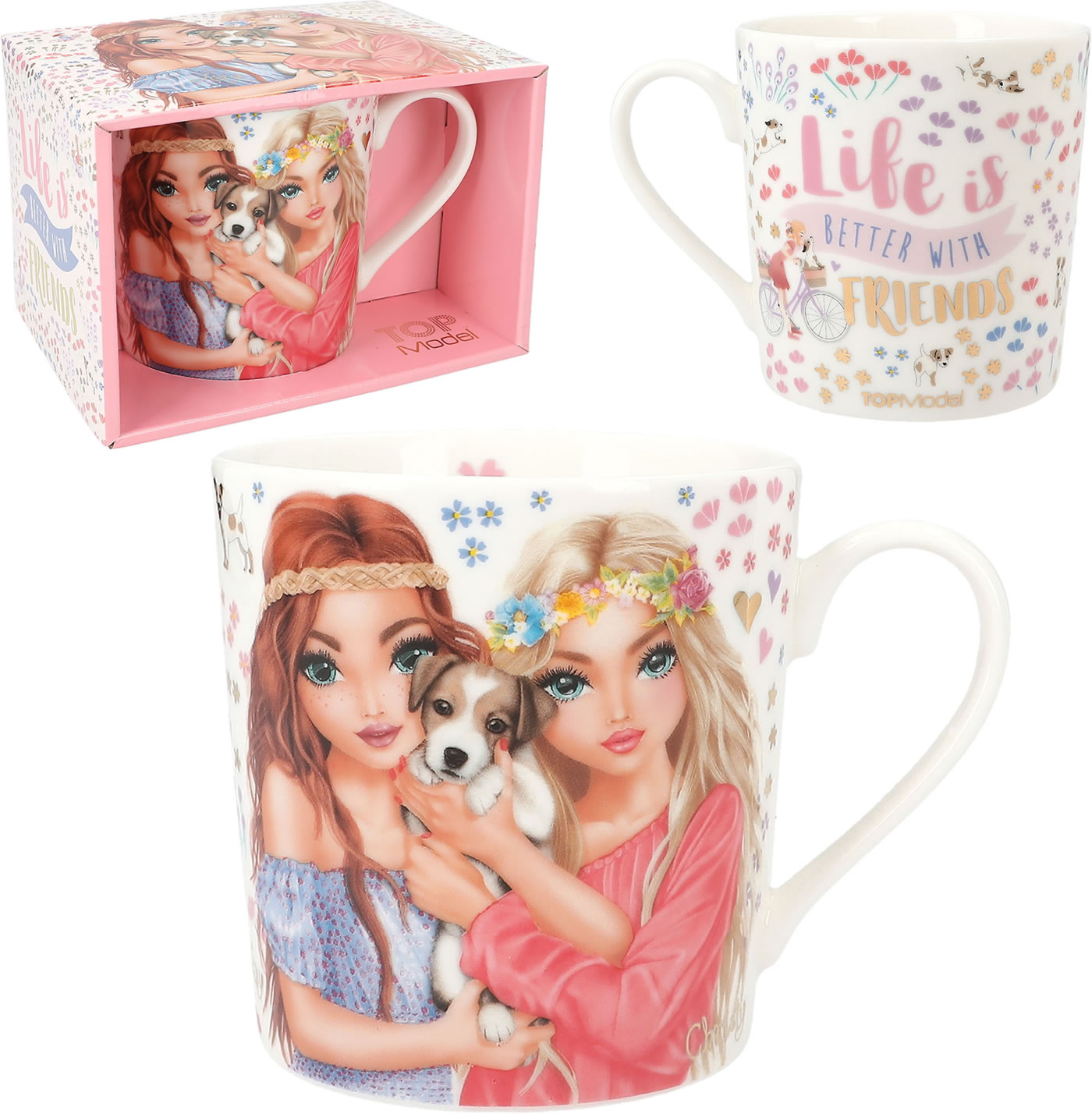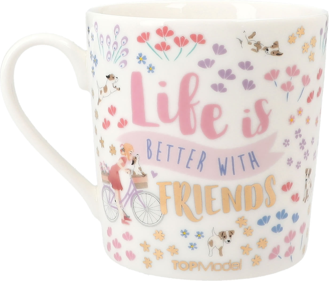 The favorite mug for your favorite drink: The VELO FLEUR porcelain mug from TOPModel has a pretty pattern of flowers and little dogs, a beautiful TOPModel motif, an illustrated friendship lettering and shiny gold finishes. Packed in a high-quality gift box. Due to the gold print, the mug is not suitable for use in the microwave and should be washed by hand. Capacity: 300 ml.