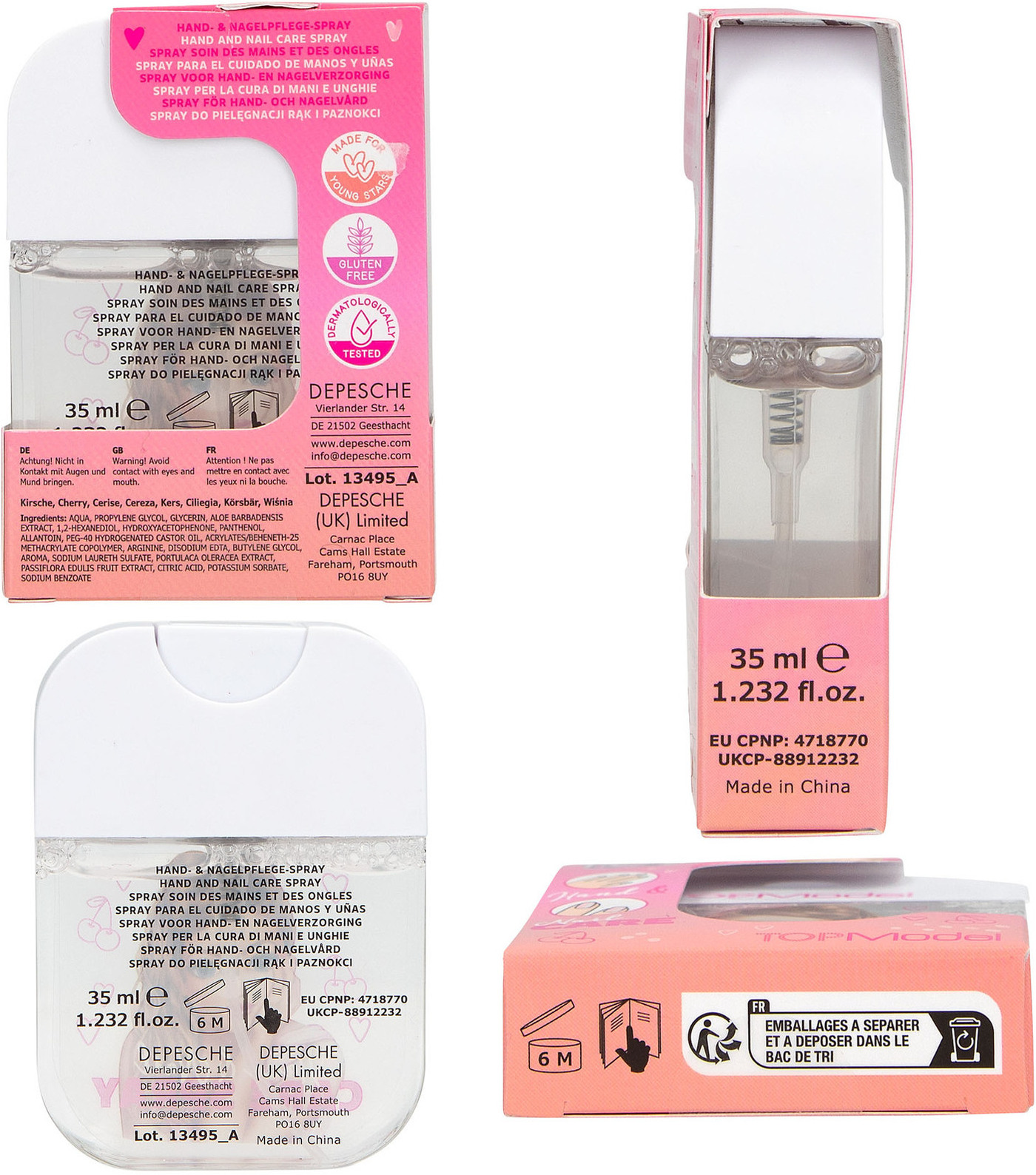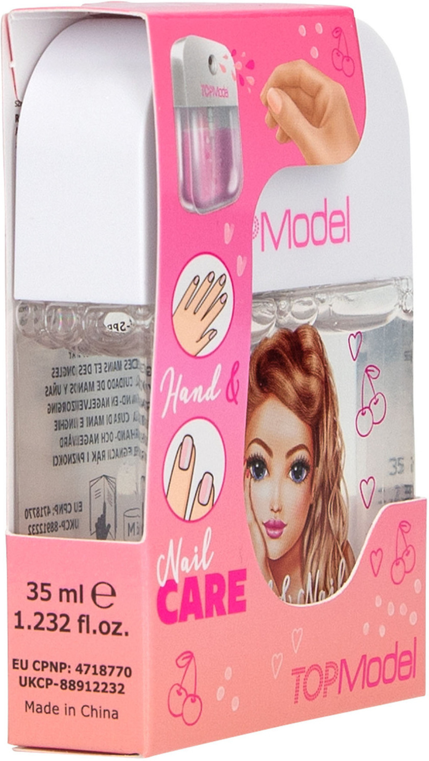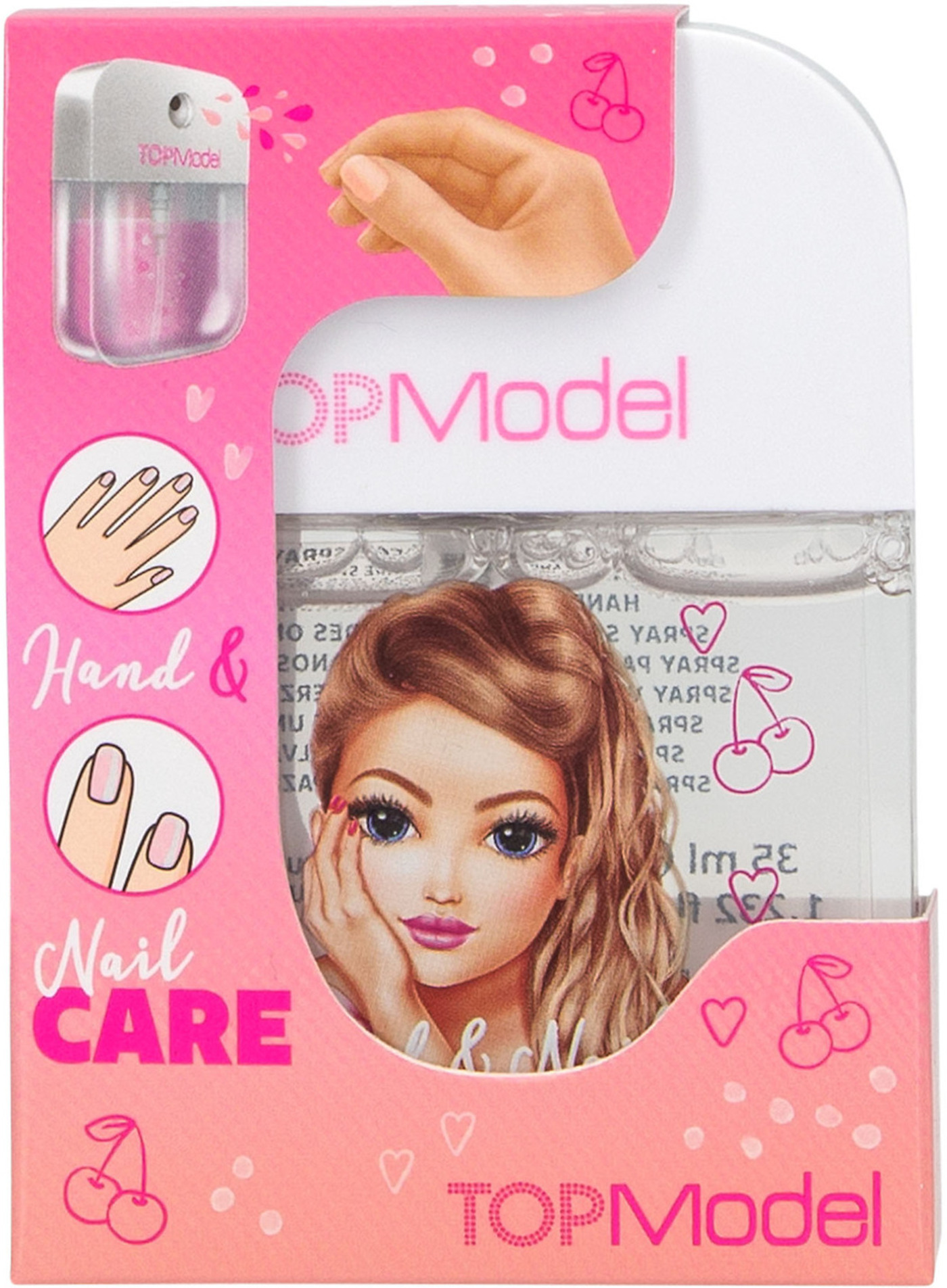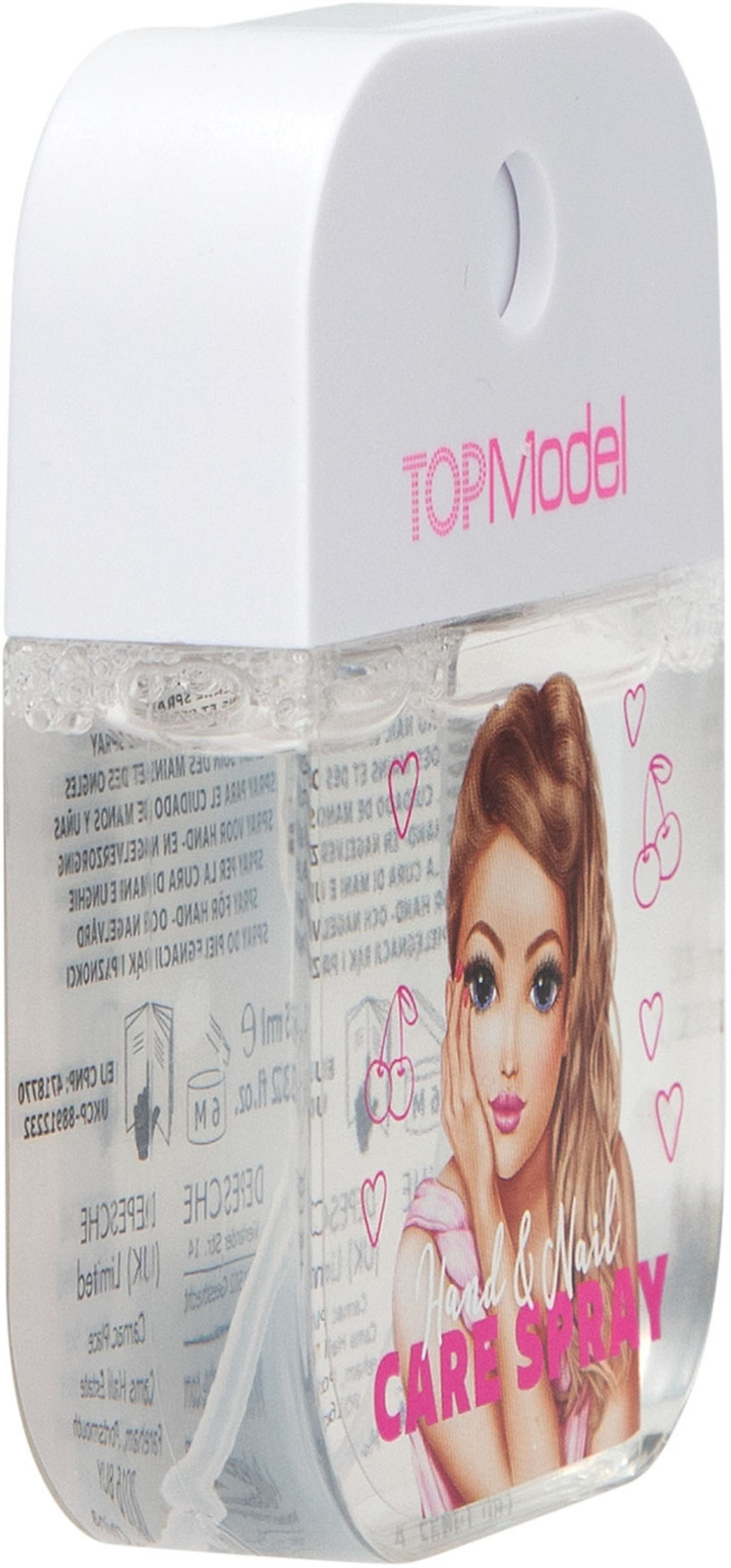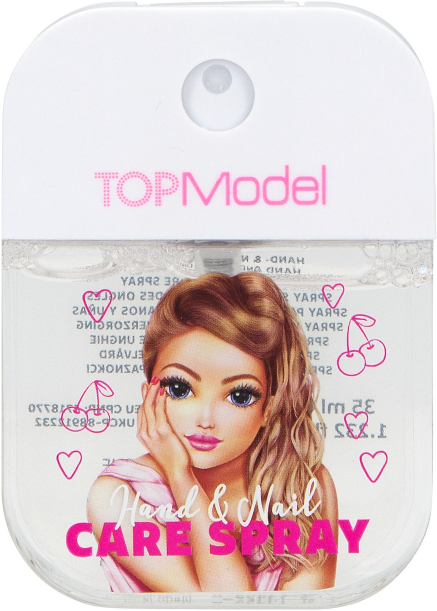 TOPModel's hand and nail spray provides care and moisture. It comes in a practical transparent spray bottle with a cool TOPModel print. The spray has a wonderful cherry scent. Contents: 35 ml