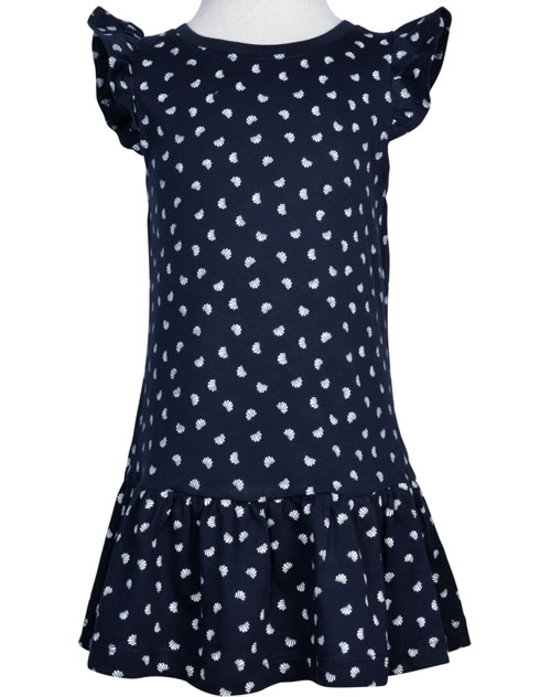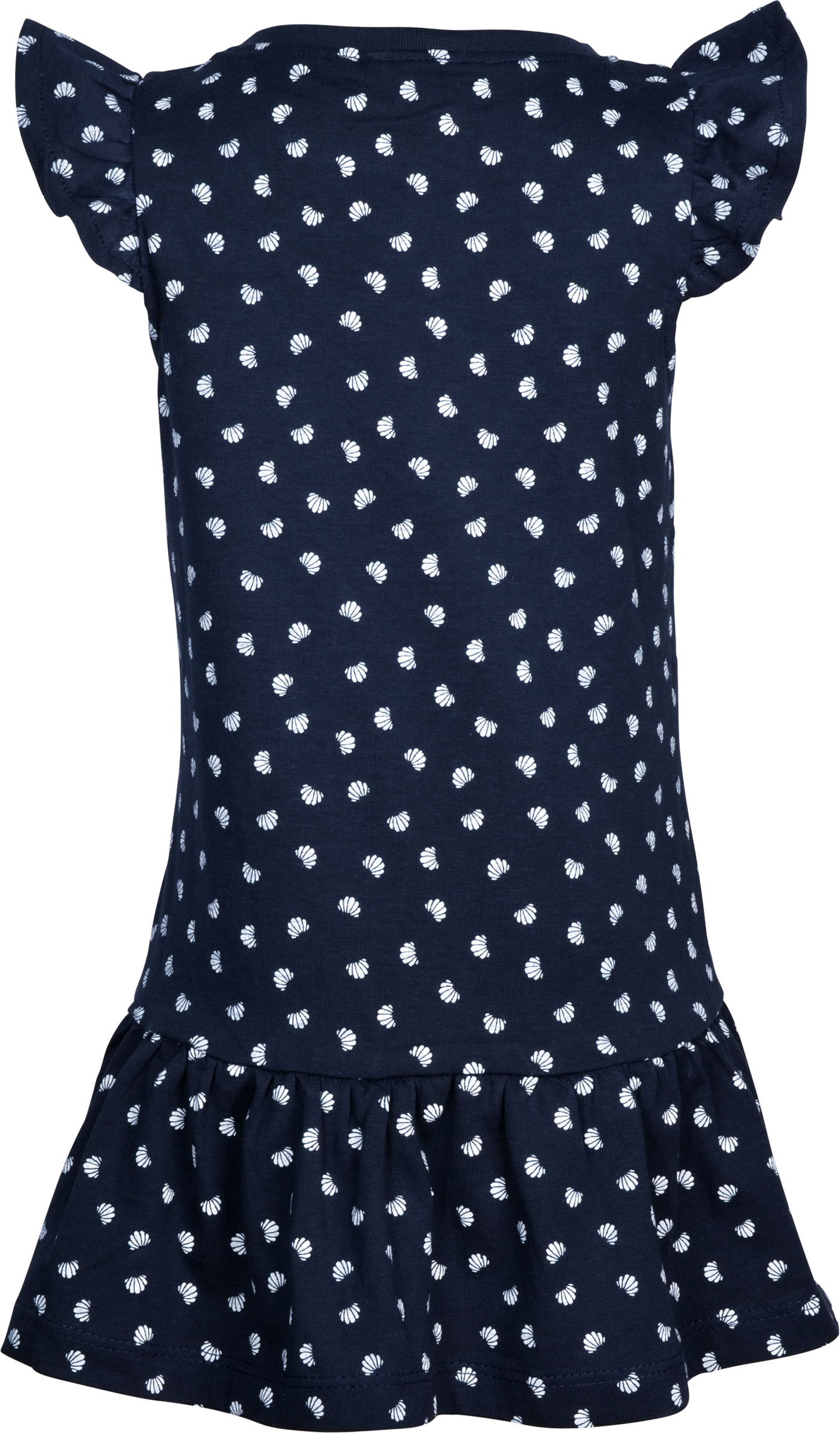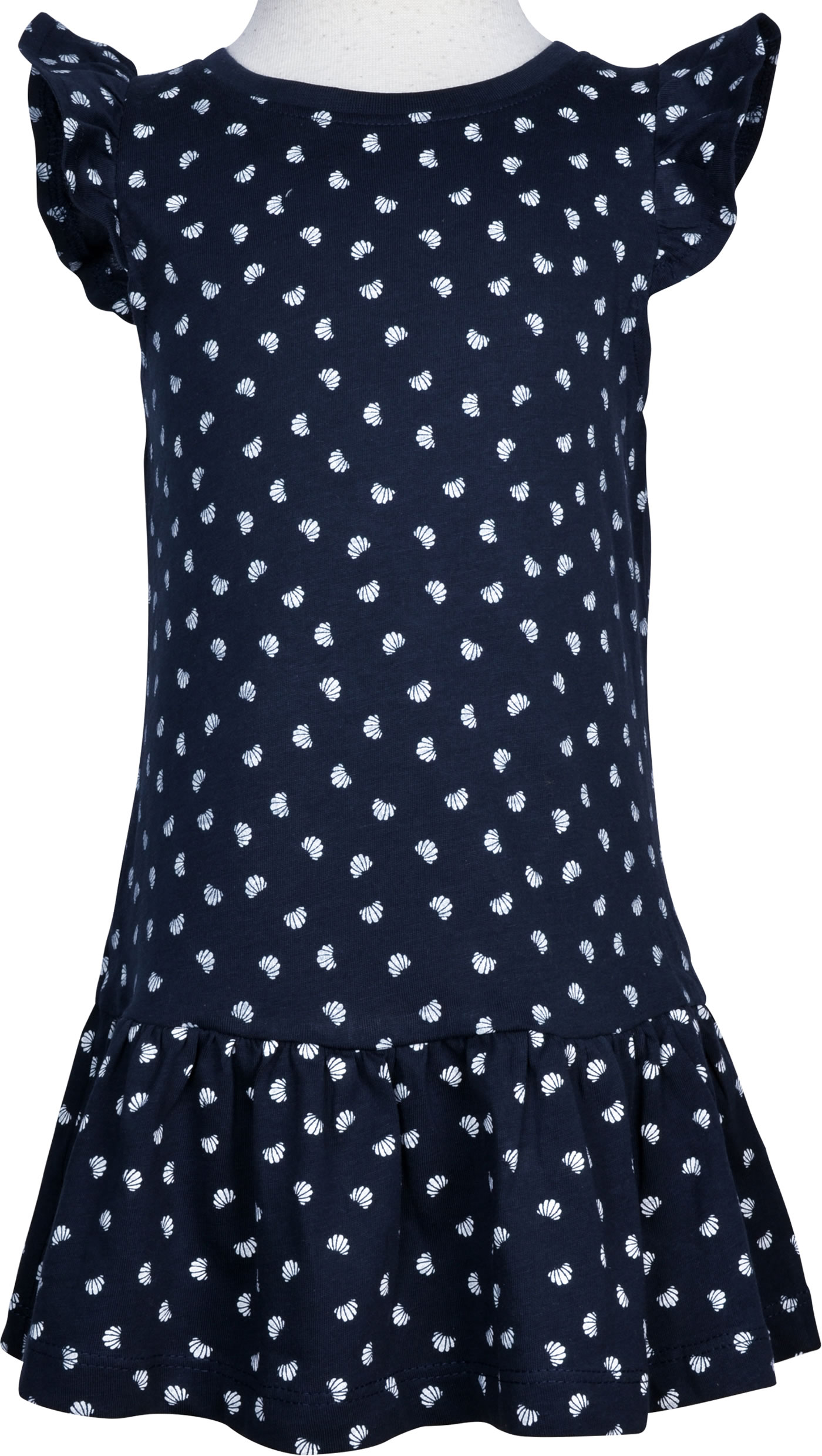 Pretty NKFVIDA jersey dress for girls by NAME IT. The loose cut of the dress is ideal for summer and can be nicely combined with leggings. The small white shells on a dark blue background and the playful cap sleeves are pretty details - just slip on on warm summer days and off you go!