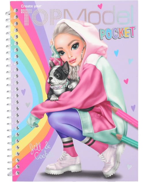 Cool designs in a handy format: The TOPModel coloring book Pocket with a shiny and glittering cover has 120 pages with model figurines that can be styled with imagination and colors. Included: 1 sticker sheet with trendy accessories.