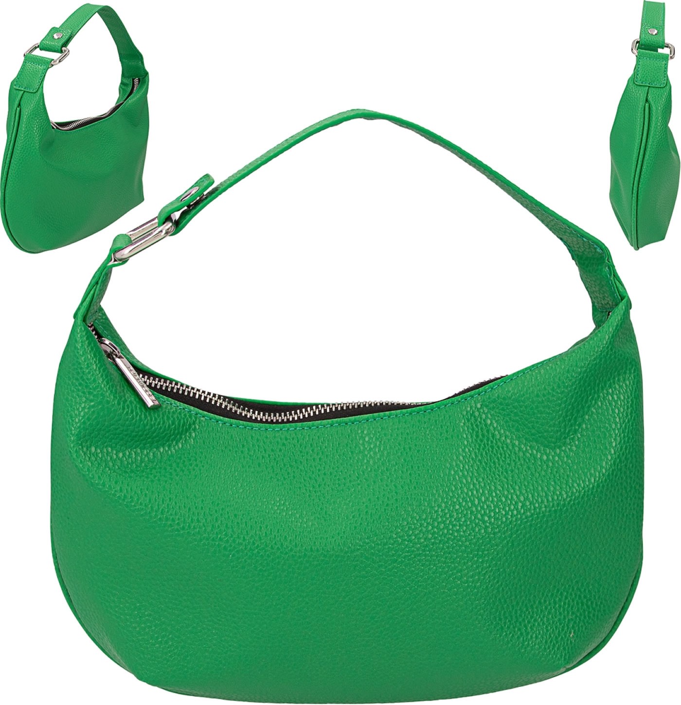 Cool city style: the small green handbag with a structured leather look and short carrying handle and zip makes every outfit trendy. With a safety button on the carrying handle and an extra pocket on the inside.