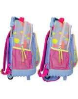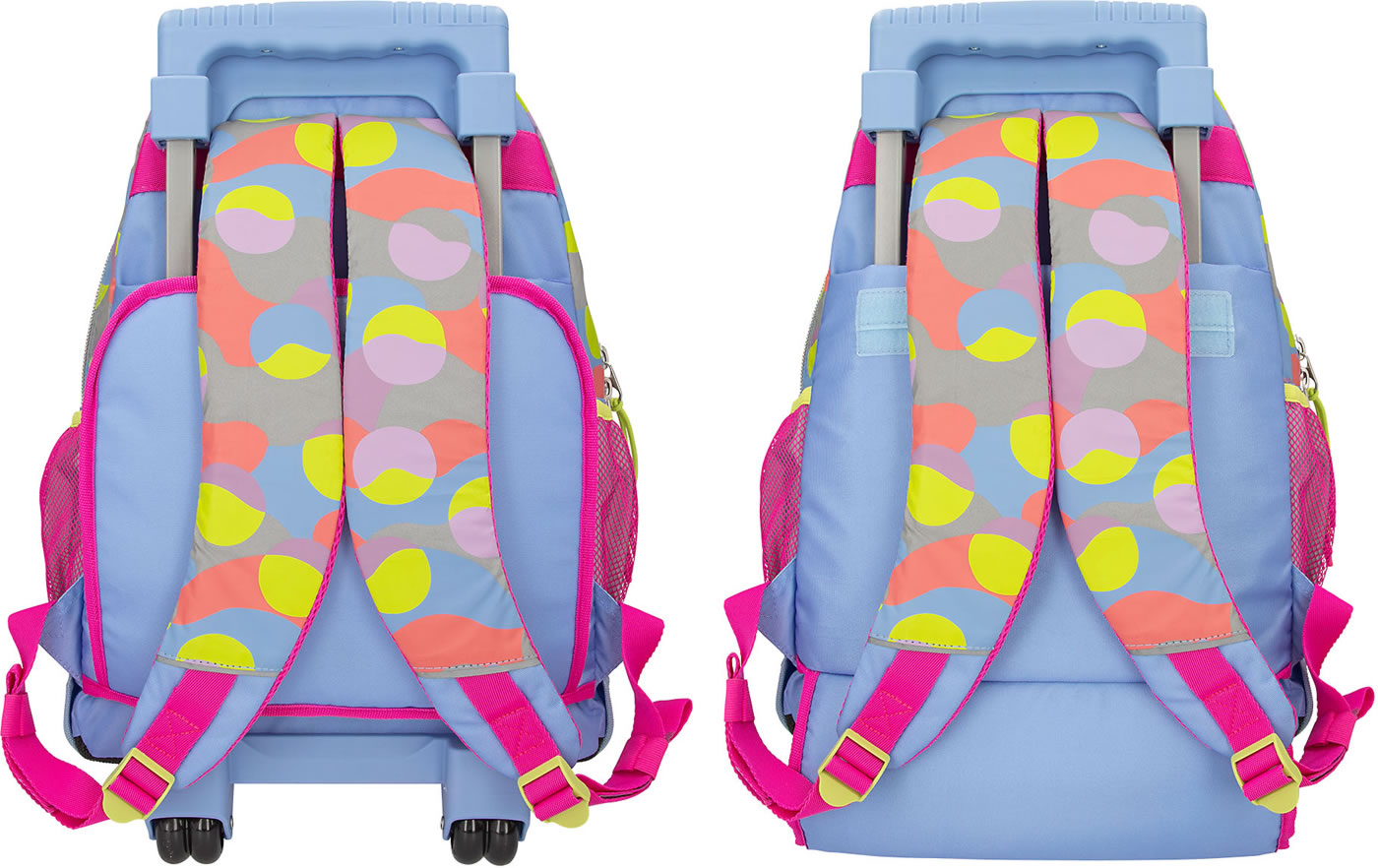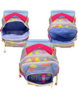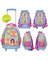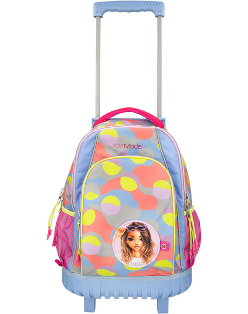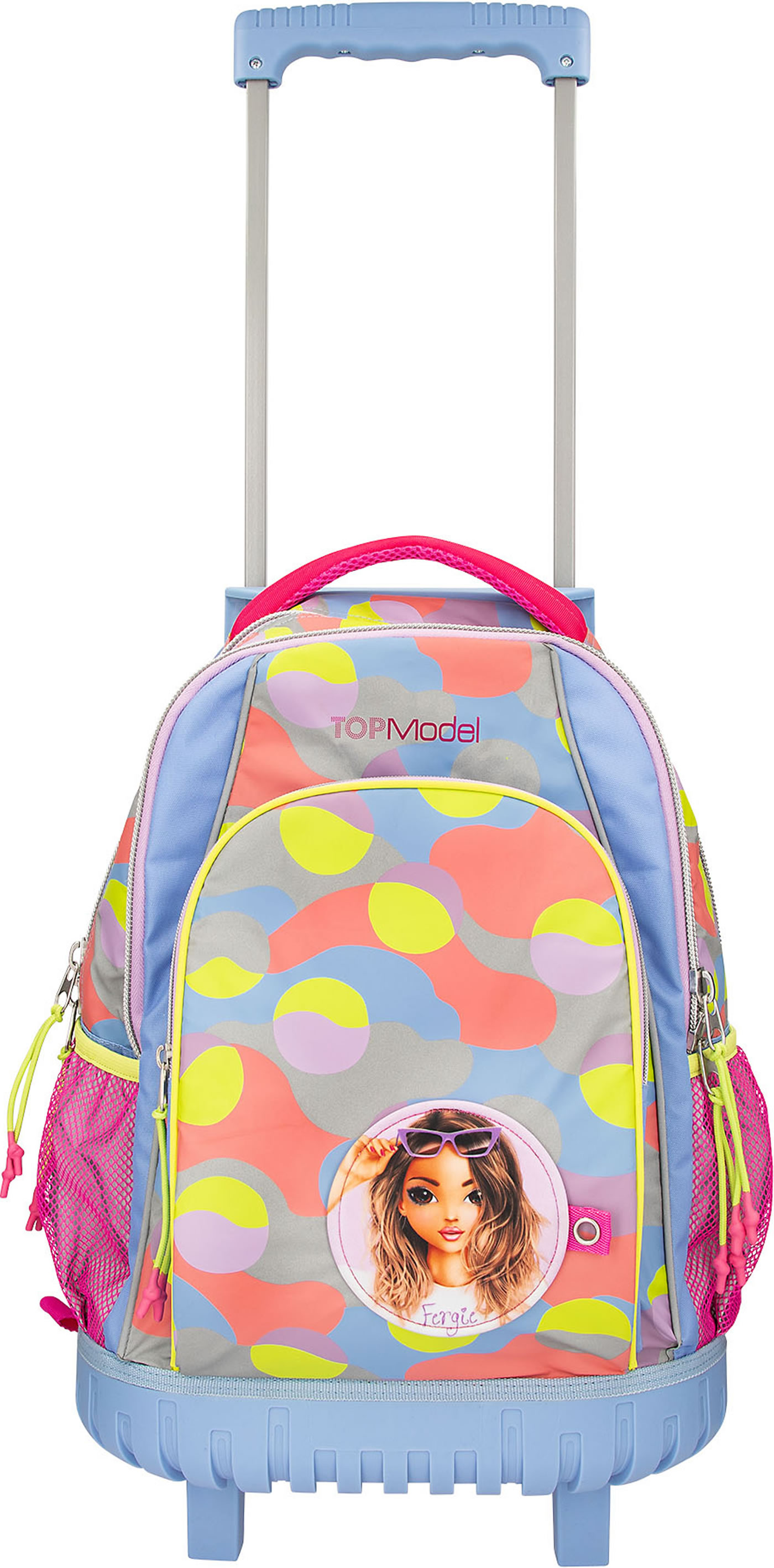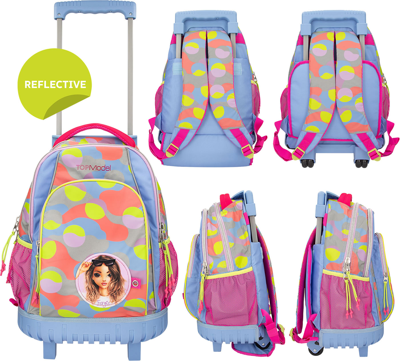 Brightly cool: The purple TOPModel backpack has a trendy, colorful, graphic pattern made entirely of reflector material on the front, sides and shoulder straps. With applied TOPModel patch on the front, great details in neon colors, integrated trolley with smooth-running wheels and telescopic handle (extension height approx. 86 cm), 3 separate compartments, side mesh pockets, padded carrying handle, padded shoulder straps and a back flap that can be put over the Wheels to prevent clothes from getting dirty when worn.