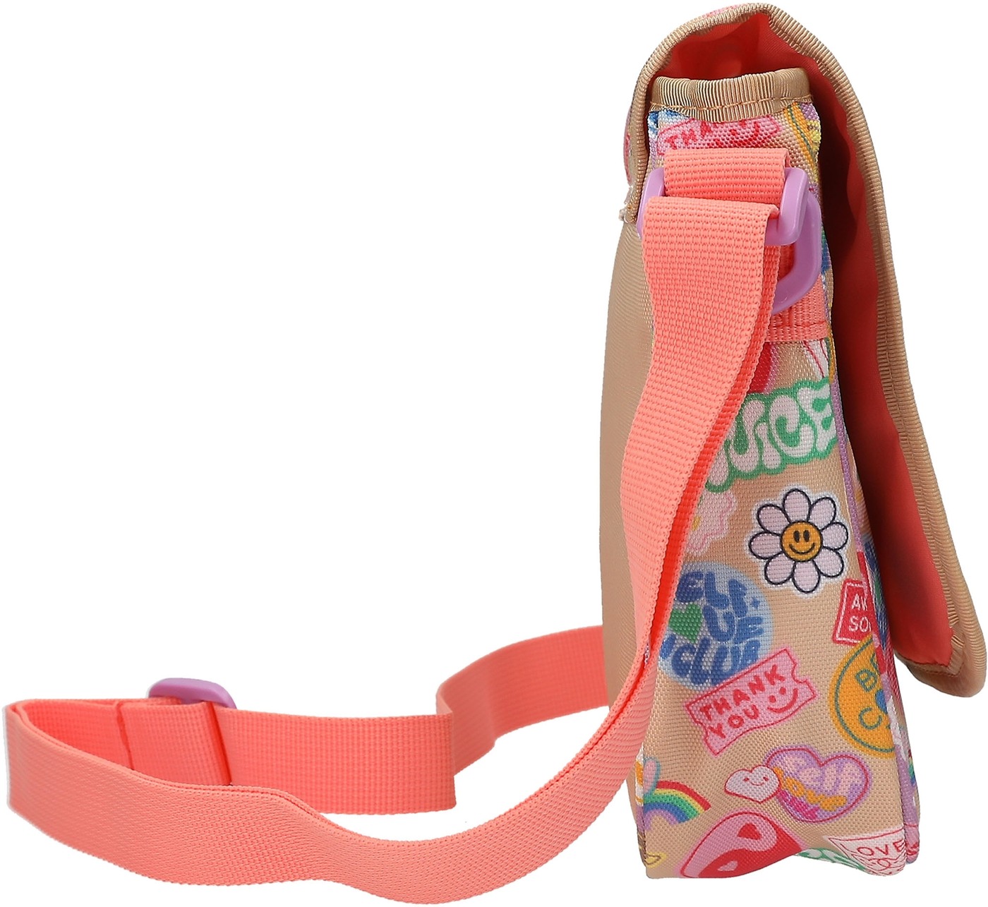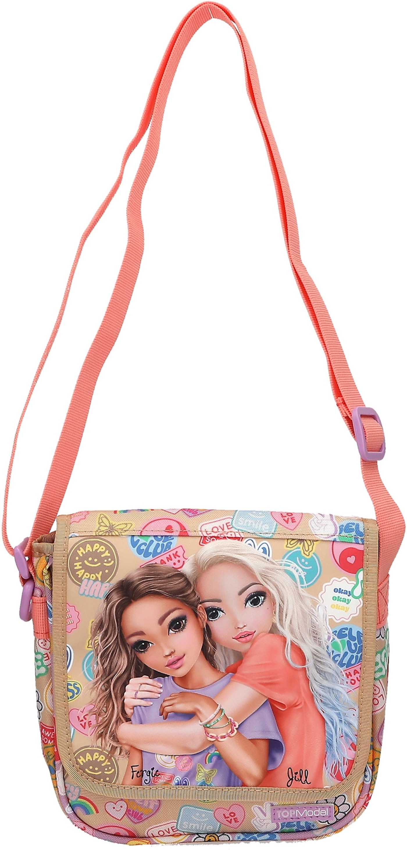 Batch Boom! The TOPModel shoulder bag in gorgeous beige and coral features a stylish double model motif and cool, colorful Batch prints on the front and sides. The shoulder strap is adjustable in length. A practical ring for attaching charms is included.