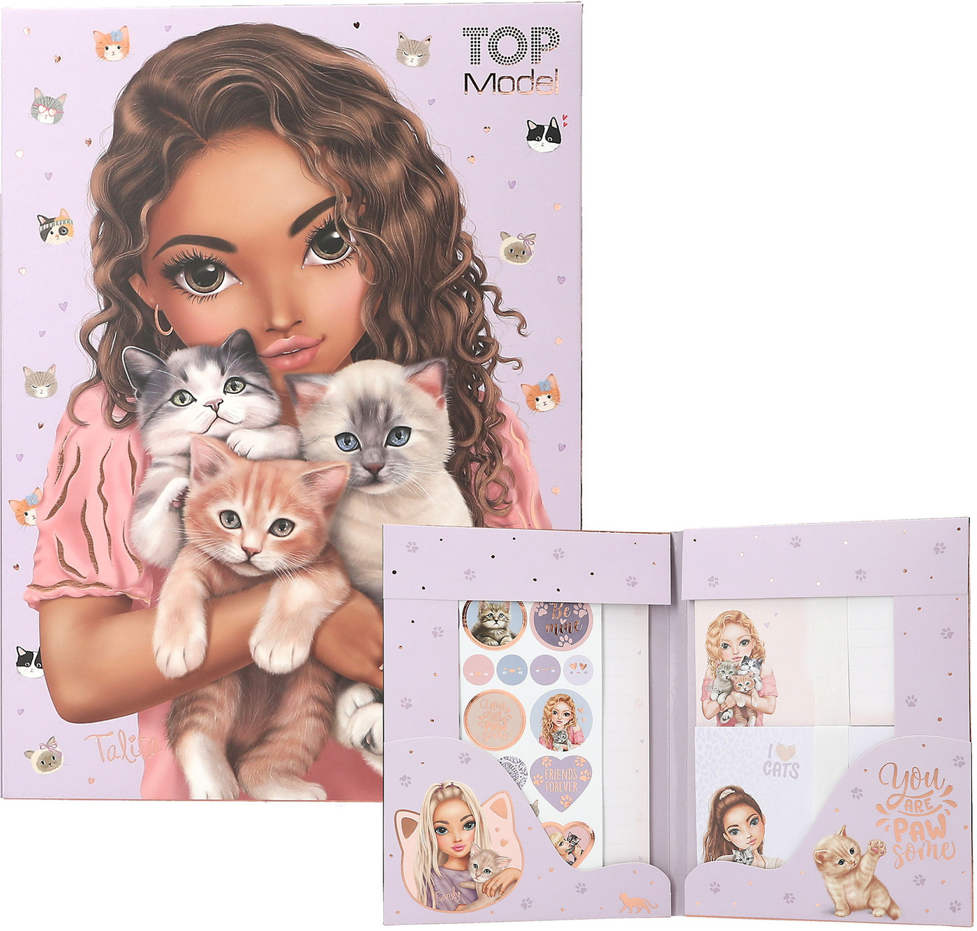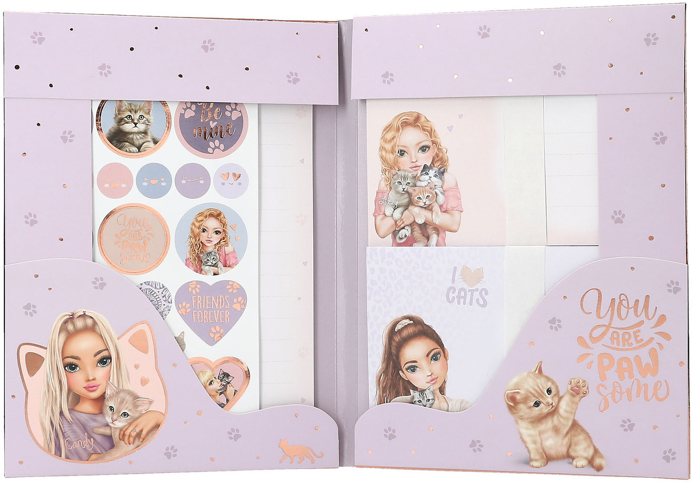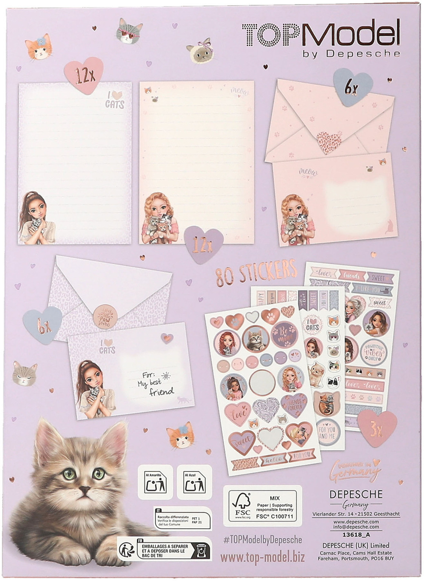 Soft purple, stylish TOPModels, and lots of super-cute kittens. The set includes 24 sheets of stationery (2 designs),