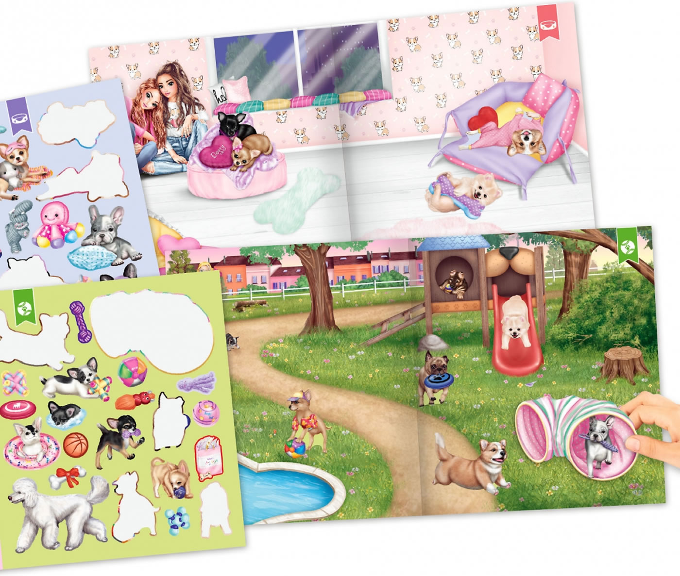On 20 pages you will find beautiful scenes from the world of TOPModel and their corgis. With the stickers you can design them imaginatively.