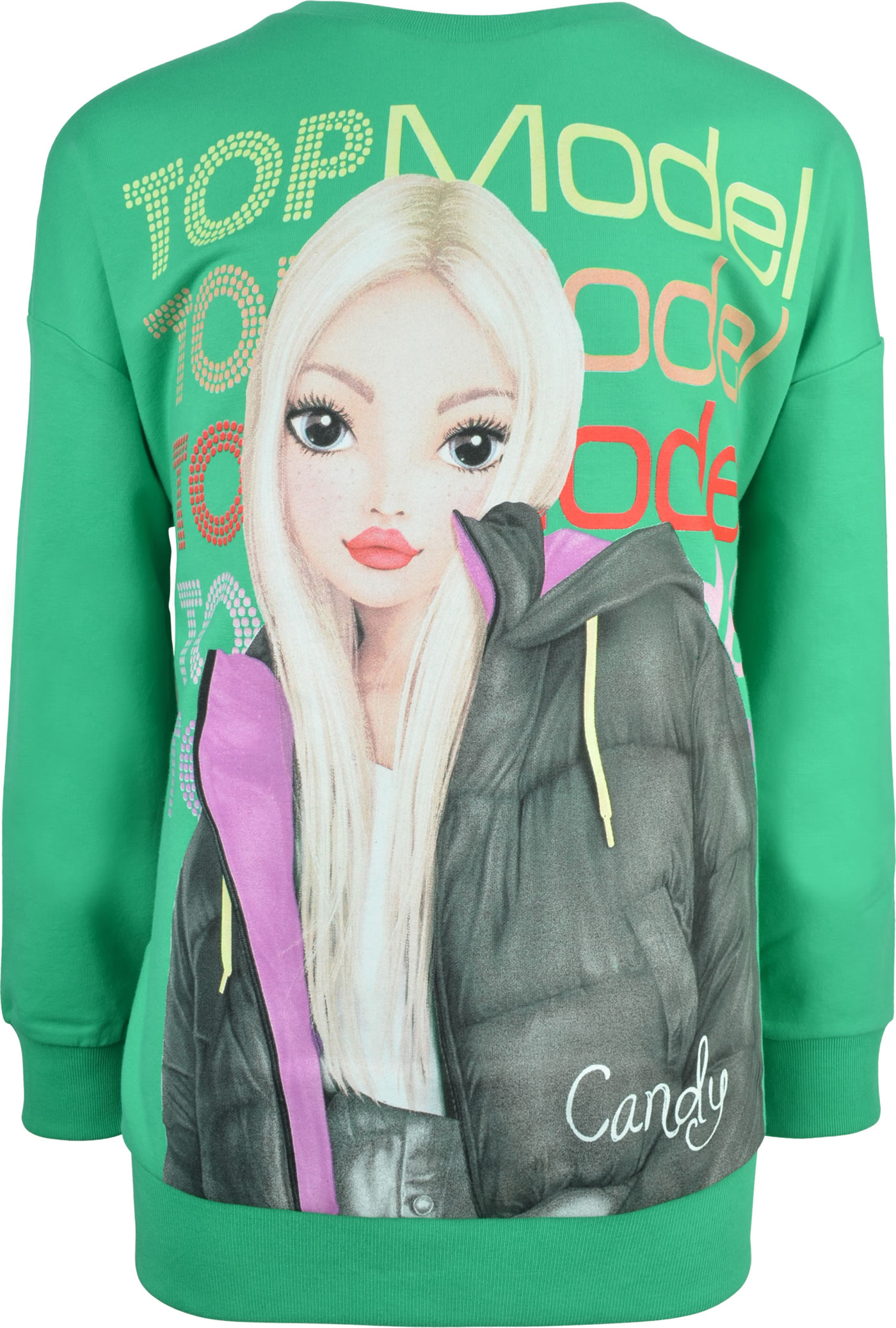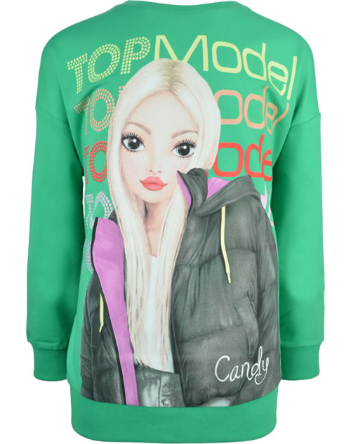 Great sweatshirt in green from TOPMODEL with the model Candy on the front. The pleasant material is very comfortable to wear and is ideal for cooler days.