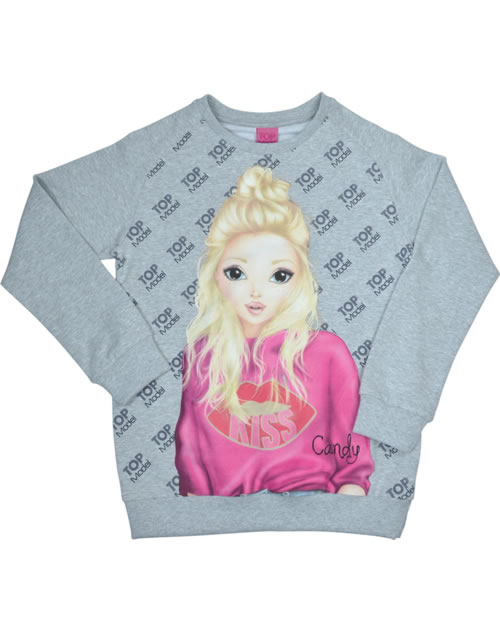 Beautiful sweatshirt in light gray mottled by TOPMODEL with the model Candy on the front. In addition, the shirt is decorated by the TopModel allover print. The pleasant material offers a high wearing comfort and is ideal for cool days.