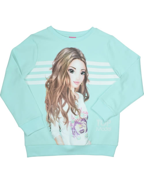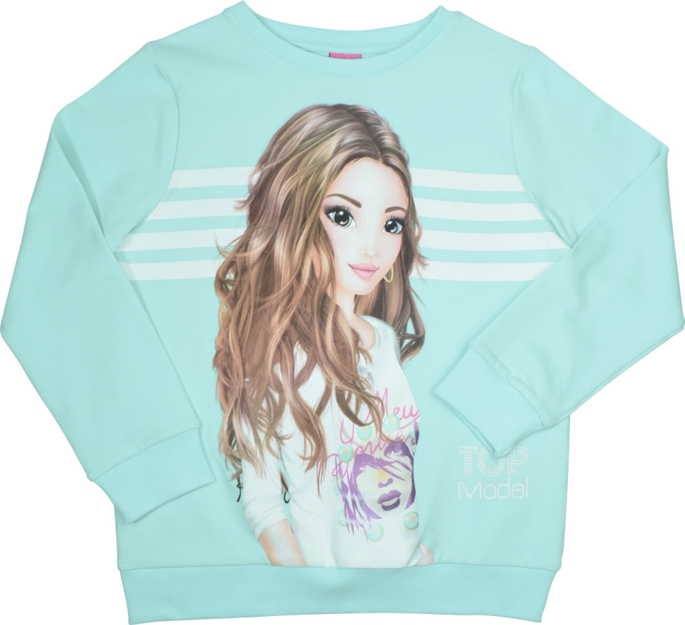 Beautiful sweatshirt in turquoise by TOPMODEL with the model Hayden on the front. In addition, the shirt is decorated with white block stripes. The pleasant material offers a high wearing comfort.