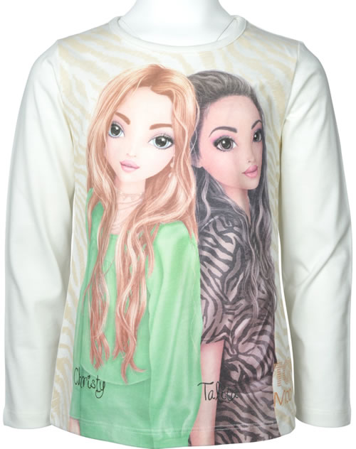 Pretty long-sleeved t-shirt in creamy white by TOPModel with the models Christy & Talita on the front. In addition, the shirt is adorned with a glittering TOPModel print. The pleasant material offers a high wearing comfort.