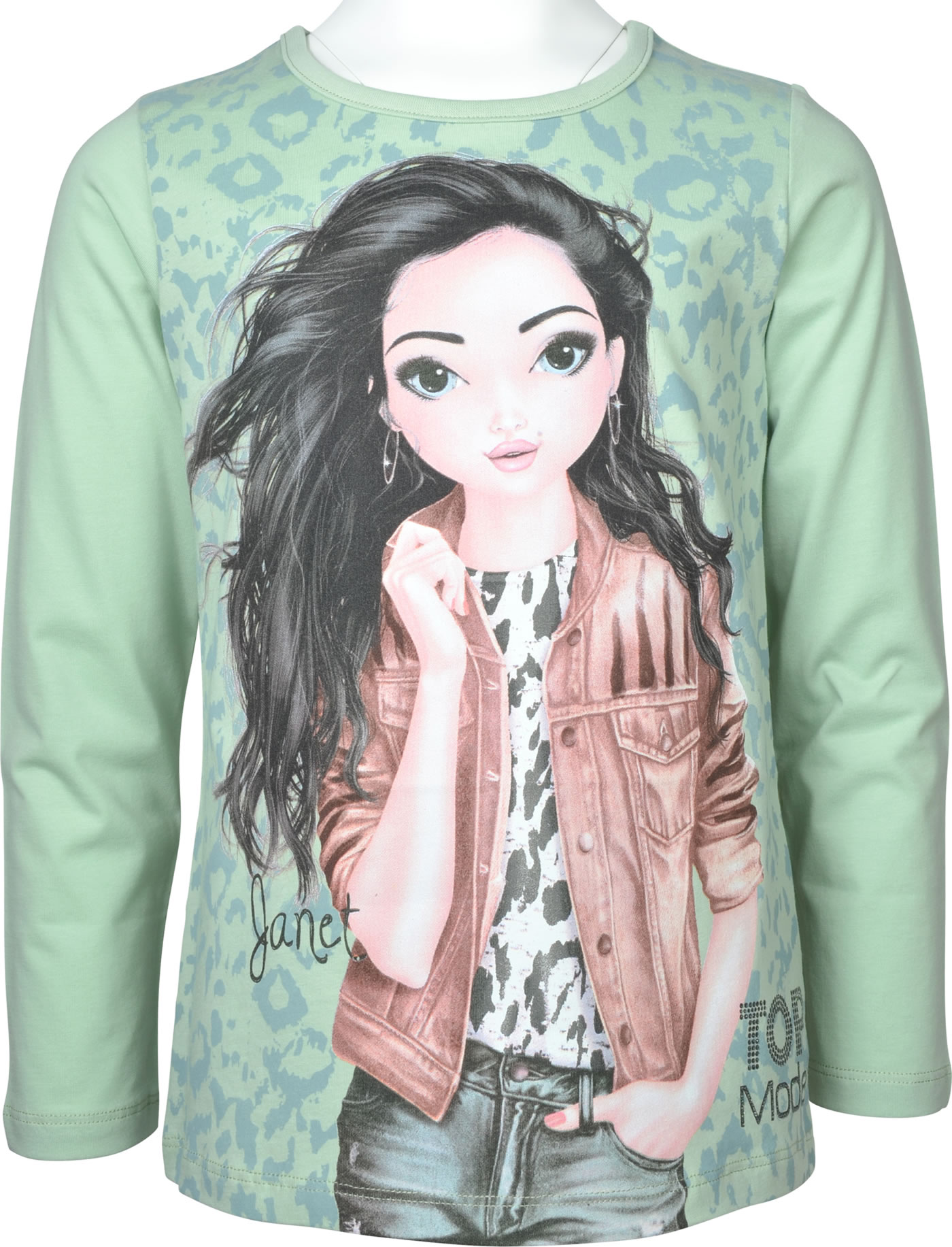 Pretty long-sleeved t-shirt in pink from TOPModel with the model Janet on the front. In addition, the shirt is adorned with a glittering TOPModel print. The pleasant material offers a high wearing comfort.